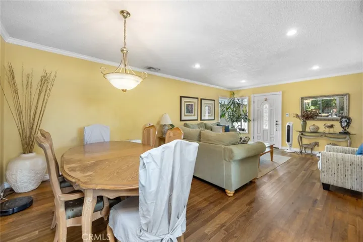 Welcome to this impeccably maintained and fully furnished 3-bedroom, 2-bathroom residence, thoughtfully designed for modern comfort and convenience. Upon entry, you’re welcomed by an open-concept floor plan complemented by gleaming hardwood floors that flow seamlessly through the main living areas. A versatile bonus room, finished with durable laminate flooring, offers flexible use as a home office, fitness space, or guest suite. The kitchen features updated granite countertops and modern appliances, while both bathrooms have been tastefully renovated with sleek ceramic tile flooring for a sophisticated touch. The exterior boasts enhanced neighborhood appeal with a professionally landscaped front yard, maintained by an automated sprinkler system. The private backyard offers a serene retreat featuring a hardscape patio, built-in barbecue, and low-maintenance drip irrigation—perfect for outdoor entertaining. Located in a desirable neighborhood within the Bellflower Unified School District, this home is conveniently close to top-rated schools and just minutes from Lakewood Mall. Additional amenities include central heating and air conditioning, ensuring year-round comfort.