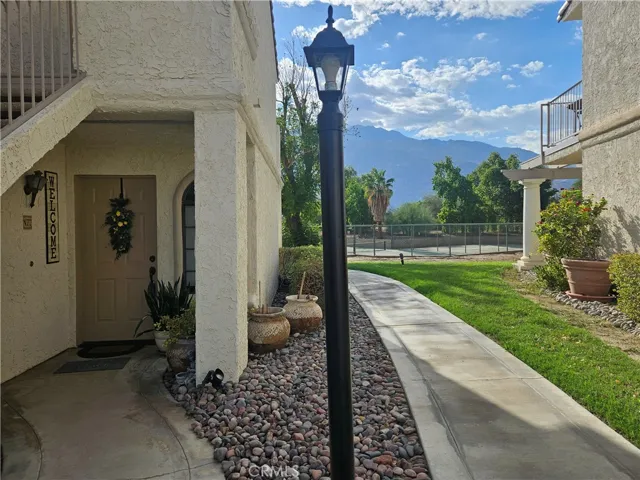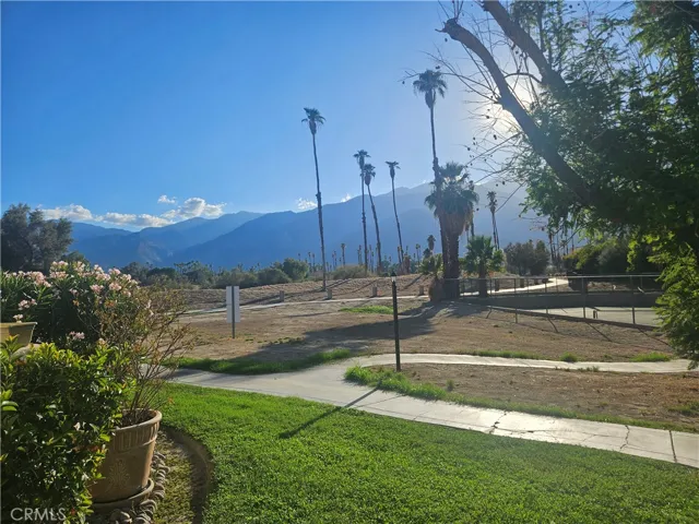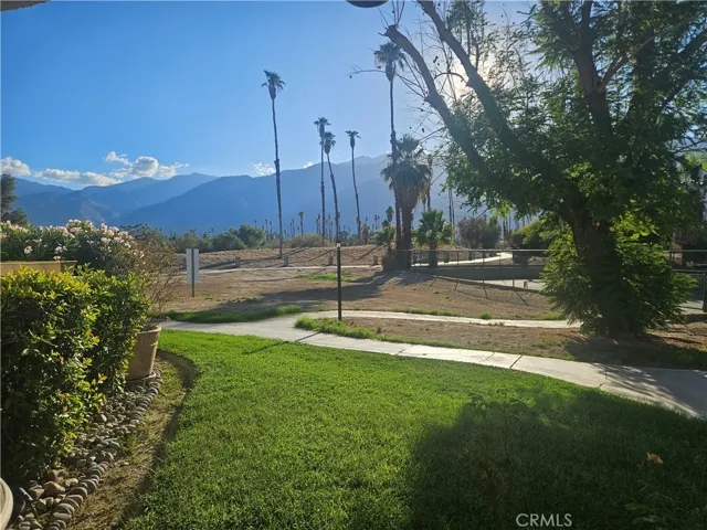 Wonderful first floor corner unit in the popular Mesquite Country Club! Lots of light coming in with 2 patios available to enjoy, open floor plan. This place has two closets and lots of built in cabinets for extra storage. One of the patios is private with vine growing on the fence near the pool, the other patio has a view of the Prescott Preserve! Private laundry room is located by the private patio with keys. The floors are beautiful white marble colored tile and kitchen cabinets are white with lots of storage area. The place is spacious and it feels bigger than most one bedroom units. The location is perfect, in the heart of Palm Springs with tennis courts, trails and more. HOA covers water, trash, cable and internet. It is a 5 minute drive from downtown area, and close to everything including biking trails and more.
