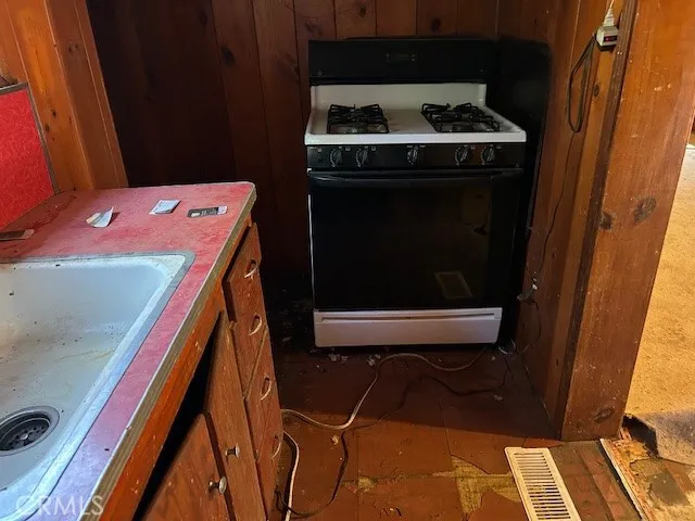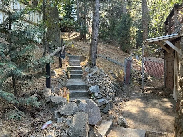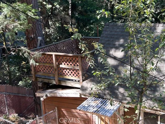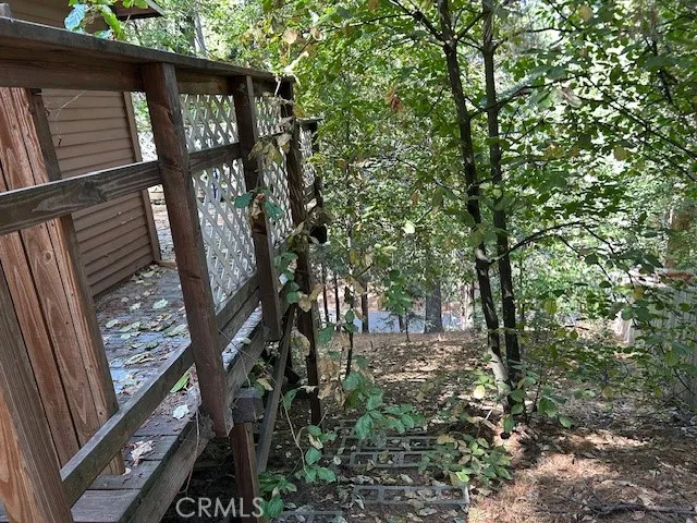 Adorable old-world getaway cabin that needs some loving. Needs siding repairs, dry rot on windows, bathroom and kitchen updating, carpet, possible repairs to FAU, roof over 25 yrs, post and pier foundation, possible wood fungus on decking, unknown condition if animals may be under house, like raccoon, rodents. It sits below the street from a set of concrete stairs. Very small kitchen with stove, cabinet for small frig. Large rock fireplace in living room. Knotty pine walls throughout. Down sloping yard has large dogwood trees. Huge party deck in rear and there are peek-a-boo views of the desert lights. Wood flooring under carpet and old linoleum. Very Small off-street Concrete parking pad may be difficult for larger cars. Main level sleeping room does not have closet but there’s a small closet next to the Stacker washer/dryer, off of the 3/4 bath. Upstairs loft is a 2nd sleeping room and small deck. Storage under rear decking. The rare street to street lot is over 6,000 square feet and runs downslope from Crest Forest Drive to Oak Drive, which is off Ponderosa from Crest Forest Dr. Cabin needs some professional work, and buyers are requested and advised to get their inspections by qualified inspectors to consider what repairs may be needed. Septic system is approximately 11 years old. New plumbing and FAU were installed prior to 2012. Seller will not pay for any repairs, sold in as is condition.