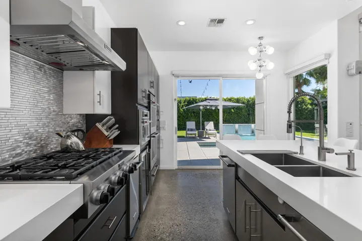 Crafted by Foxx Homes, this BREATHTAKING residence in the sought-after Sterling Cove community in Rancho Mirage offers sophisticated design and LUXURIOUS finishes, curated by a renowned local interior designer. With 3 spacious bedrooms and 3 stylish bathrooms, this home features a cozy fireplace in the family room and an open-concept layout–perfect for entertaining, al adding a touch of Hollywood glamour to the home. Soaring ceilings and abundant natural light create an inviting atmosphere throughout. Step outside into your own tropical oasis, complete with a STUNNING pebble tech pool and spa, elegant water fountains, and a fully equipped OUTDOOR KITCHEN with a BBQ. This exceptional home embodies the ultimate Southern California desert lifestyle..