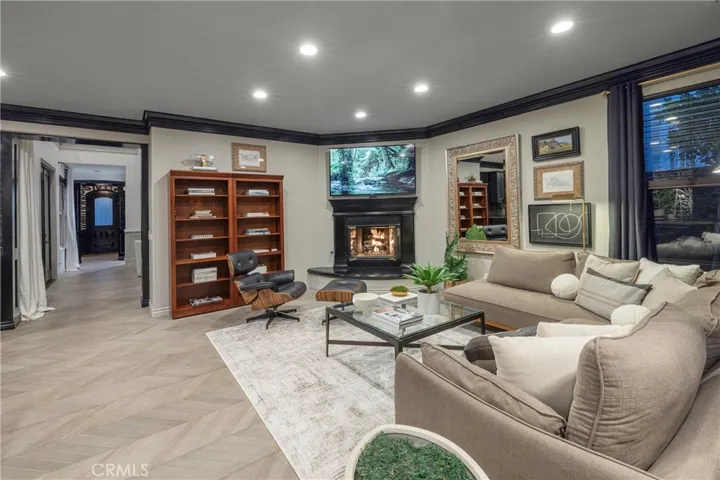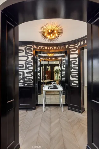 TV-featured Magazine- Quality designer model of a home in Irvine’s prestigious triple guard-gated Northpark community with French oak chevron wood floors, dramatic double-height dining room, open concept family room and abundant natural light. Tucked on a private cul-de-sac with 4 bedrooms plus office (optional 5th), loft, and first-floor guest suite. Custom details include wainscoting/paneling, elegant lighting and hardware, and refined millwork throughout. Spacious living areas flow to outdoor patios with stone fireplace and south-facing garden. The primary suite offers a spa-style bath with freestanding soaking tub, Carrara marble floors, mirrored wardrobe walls and dual vanities. Chef-ready kitchen features quality finishes and thoughtful design.