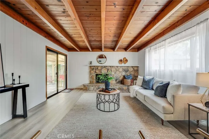 This beautifully updated three-bedroom, two-bath residence blends comfort, style, and functionality. Step inside to find a light-filled living room with a large picture window and newer plank flooring that sets a warm, inviting tone. The kitchen offers ample counter space and rich wood cabinetry, making meal preparation effortless. The adjacent dining area is perfect for casual meals or entertaining. A spacious family room steals the show with its open-beam ceilings, cozy stone fireplace, and sliding glass doors that open to a covered patio—perfect for year-round indoor/outdoor living. The private primary suite, tucked at the rear of the home, easily fits a king-sized bedroom set. Additional highlights include fresh interior paint, recessed lighting, new baseboards, and central air and heat for year-round comfort. Outdoors, the 6,006 sq. ft. lot provides ample room to enjoy, featuring a long driveway for extra parking and a detached two-car garage. Located within the sought-after Carver Elementary boundary, this home also offers convenient access to nearby golf courses, bike paths, and El Dorado Park. A perfect blend of charm, updates, and location—this is the one you’ve been waiting for!