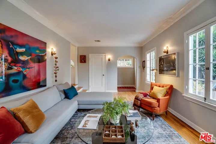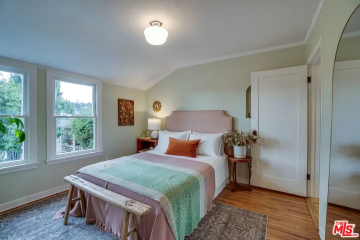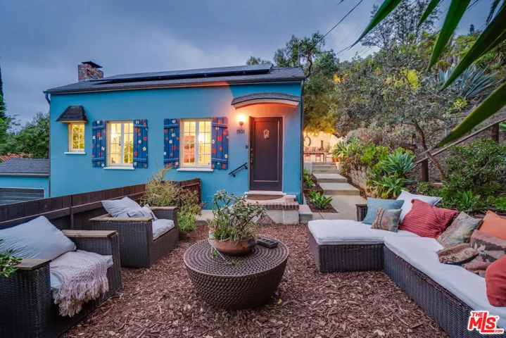 Steeped in old-school Echo Park charm, this 1925 storybook-style gem is one of those rare properties that sparks pure nostalgia for the neighborhood’s creative, community-driven vibe… known for its melting pot of musicians, artists and cultures. Painted the sweetest shade of blue with handcrafted shutters, this two-bedroom, two-bath home includes a spacious primary suite… a seamless addition to the original structure. An expansive patio strung with twinkle lights offers effortless indoor-outdoor living, perfect for dining, entertaining, or relaxing under the stars. Inside, refinished original hardwood floors run throughout, a vintage kitchen has been thoughtfully updated while retaining its period details, and split-level living lends both character and separation of space. Sunshine pours in from all directions, while outside, a wraparound yard on an expansive 10,000+ sq ft lot offers rambling gardens, shady nooks, and space to play, gather, or simply soak in the wonder of Echo Park. At the back of the property, a beautifully restored 1950’s vintage Spartan trailer adds another layer of possibility… a cozy creative retreat, guest haven, or successful Airbnb with its own private deck and unforgettable sunset views. A handful of blocks away, enjoy my local favorite, Valerie Echo Park, for coffee & delectable eats. Other phenomenal local spots include Canyon Coffee, Cookbook, and Bacetti Trattoria, along with the endless dining, arts, and cultural offerings on nearby Sunset Boulevard… not to mention the highly coveted Elysian Heights Elementary Arts Magnet just around the corner. This is a one-of-a-kind Echo Park offering, brimming with history, artistry, and a touch of everyday magic.