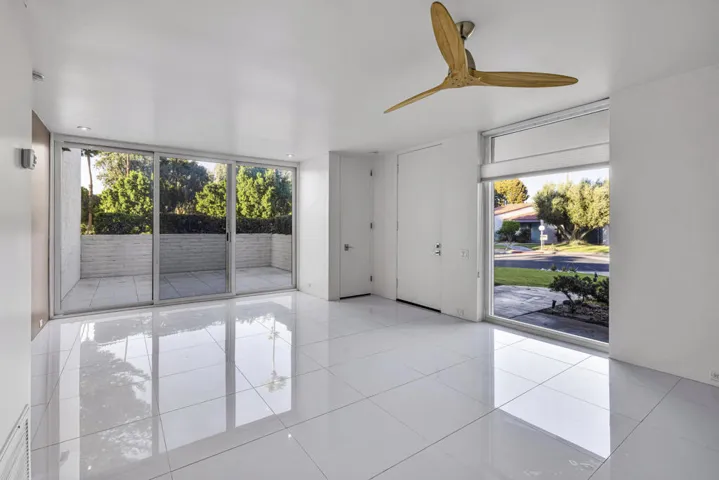 Designed by William F. Cody, AIA – Stylish Townhouse-Style CondominiumThis beautifully designed two-bedroom, one-and-a-half-bath townhouse-style condominium blends timeless architecture with modern updates. Recently refreshed with new paint, the spacious interior features a bright and open floor plan ideal for comfortable living.The first floor boasts a large living and dining area with striking floor-to-ceiling windows that flood the space with natural light and open to a generous private patio–perfect for outdoor entertaining. The modern kitchen is outfitted with a sleek glass tile backsplash, stone countertops, and newer appliances, offering both style and functionality.Upstairs, both bedrooms provide ample space, with the primary bedroom featuring an additional nook ideal for a home office or cozy sitting area. Tasteful wooden ceiling fans add a touch of elegance and comfort throughout most rooms.This thoughtfully updated home offers the best of classic architectural design and contemporary living.
