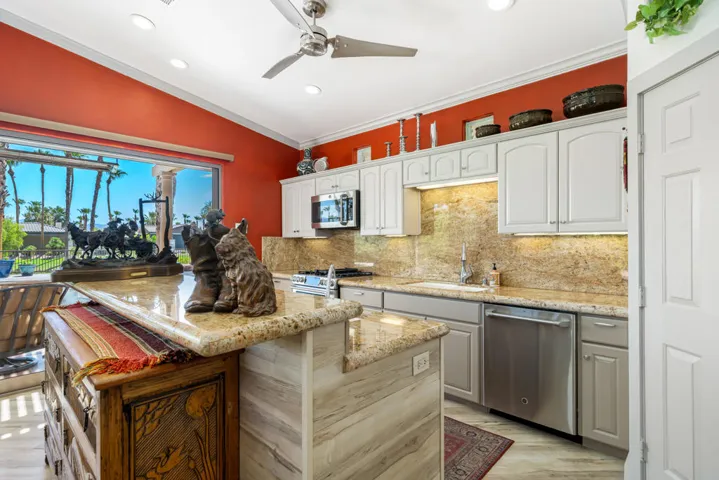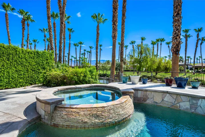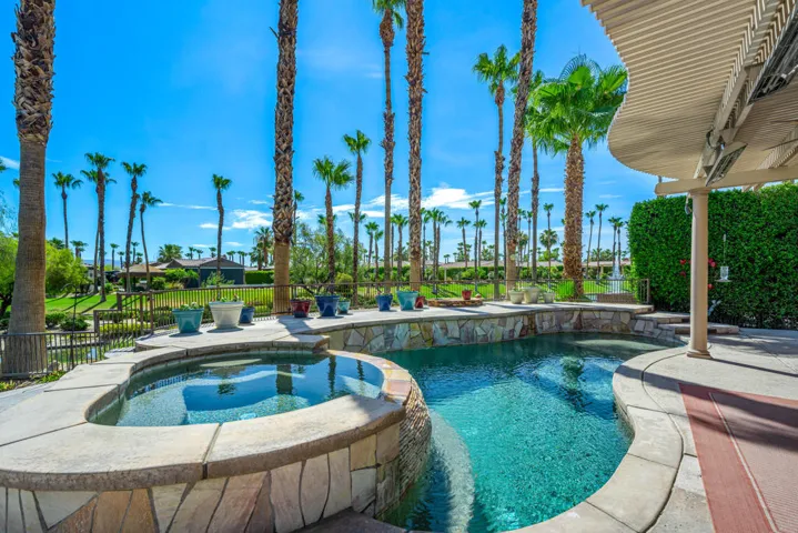Nice property located in Desert Shores Motorcoach Resort property with Pool and Spa.Raised view deck with fireplace looks down the private lake and greenbelt.Great Room Kitchen, Retreat with Double-Sink Vanity and Walk-In Closet and Garage.Common Facilities includes Clubhouse, Library, Fitness, Pickleball, Tennis, Bocce Ball, Community Pool and Spa.