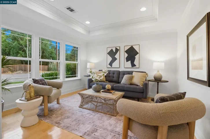 Price Improvement! Experience the best of Danville living at 4 Bueno Court. Tucked away on a peaceful court just minutes from downtown, this beautifully updated single story home blends modern comfort with timeless style. Sunlight fills the open layout, highlighting hardwood floors and fresh updates throughout, painted cabinetry, new fixtures, and more. The kitchen is the heart of the home, featuring a generous island and cheerful breakfast nook perfect for morning coffee or casual gatherings. The primary suite includes a flexible bonus space that can easily double as a home office, reading lounge, or fitness area. Outside, enjoy resort-style living with a sparkling solar-heated pool, fire pit, and spa pad ideal for relaxing or entertaining year round. With owned solar for both the home and pool, energy efficiency meets everyday luxury. A spacious 3-car garage, award-winning schools, and convenient I-680 access make this location truly unbeatable.