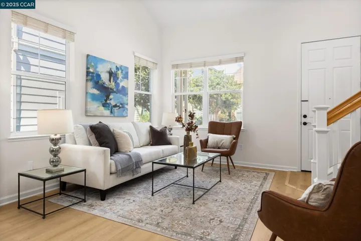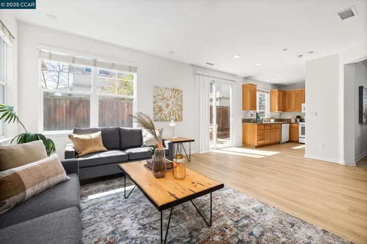 Within walking distance to Garin Elementary and Edna Hill Middle, this Garin Corners home combines everyday convenience with a welcoming sense of community. Offering 3 bedrooms, 2.5 baths, and 1,741 sq. ft., the layout balances open gathering spaces with private retreats. The main level is filled with natural light, with a spacious living and dining area that flows seamlessly into the kitchen, complete with a gas range and updated sink. The adjacent family room opens directly to the yard, perfect for barbecues, evening hangouts, or playtime. Upstairs, the primary suite features a walk-in closet and spa-inspired bath with dual sinks, soaking tub, and stall shower. Two additional bedrooms share a full bath with dual sinks, while the upstairs laundry room with cabinetry adds convenience. Outdoors, enjoy a private patio with space to garden, relax, or host friends. Close to shopping, dining, parks, Highway 4, and BART, with HOA-maintained front landscaping for effortless curb appeal.