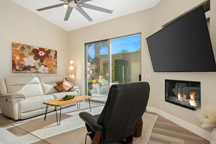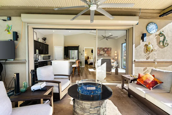 #78 DESERT SHORES RESORT Newer kitchen countertops, newer vinyl plank floors, new bathroom, baseboards, epoxy floor and split-system air in garage.Covered patio and pool, spa and firepit!Western Exposure Property situated on beautiful lake with Mountain Views. Pool & Spa! Association includes clubhouse, tennis, fitness , pickleball, community pool & spa, social activities, 24 hour, guard gated with high-tech perimeter security, trailer storage area, doggie park, front yard landscape maintenance & brand new super-speed FIOS internet