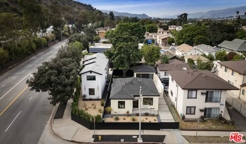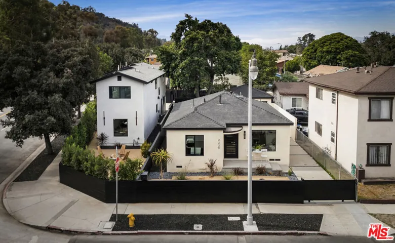Discover this stunning renewal of a Traditional and Modern residence on an expansive flat corner lot in Frogtown. Both residences feel romantic and dreamy, yet stylish, with undeniable presence and stature. A luminous, designer-crafted interior with the rare feeling of a private compound. Dual pane windows throughout both residences create a serene and quiet atmosphere. The polished Traditional offers 2 bedrooms and 2 bathrooms, enhanced by wide-plank white oak hardwood floors throughout. The chef-inspired kitchen boasts new appliances, LG washer/dryer and custom cabinetry. Outside, a generous yard invites you to grow, entertain, and enjoy the shade of a mature avocado tree. A long driveway easily accommodates up to four cars, while the garage presents an exciting possible opportunity for a versatile studio space. Modern residence is a sleek, modern two-story home with 3 bedrooms, 2.5 bathrooms, and convenient attached garage with room for two cars. Inside, wide-plank white oak hardwood floors flow through out an open-concept living and dining space, complemented by main-level half bath and direct garage access. The kitchen combines custom cabinetry with state-of-the-art appliances for a fresh modern look. Upstairs, you’re greeted by a spacious primary bedroom with spacious closets, including a generous walk-in closet, along with two well-portioned secondary bedrooms. Designer-crafted bathrooms in both primary and secondary suites showcase impeccable style and sophistication. As you move through the home, breathtaking mountain vistas surround you. A yard ideal for a leisurely picnic or lively outdoor gathering. Located within the highly regarded Dorris Elementary School District, rated 9 out of 10 on GreatSchools.org. In Frogtown, immerse yourself in a true artistic enclave, all while enjoying local cuisine and LA River bike trails. A one-of-a-kind, once-in-a-lifetime opportunity to acquire this fully vacant compound perfect to call home or as an exceptional investment.