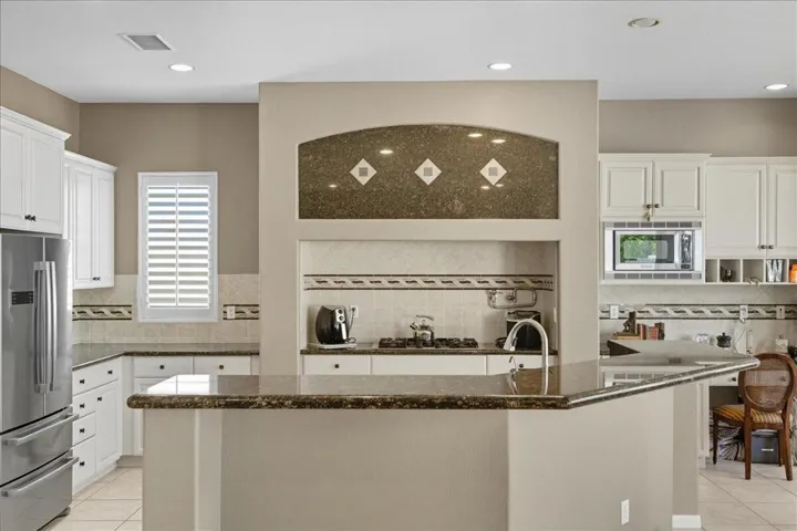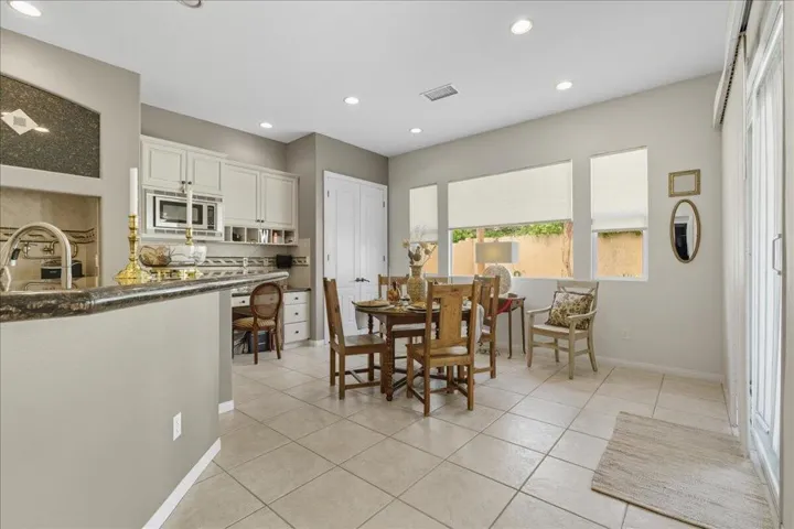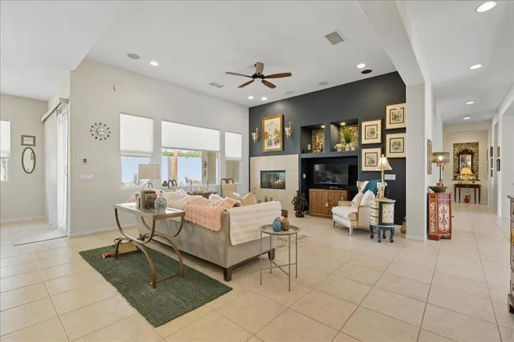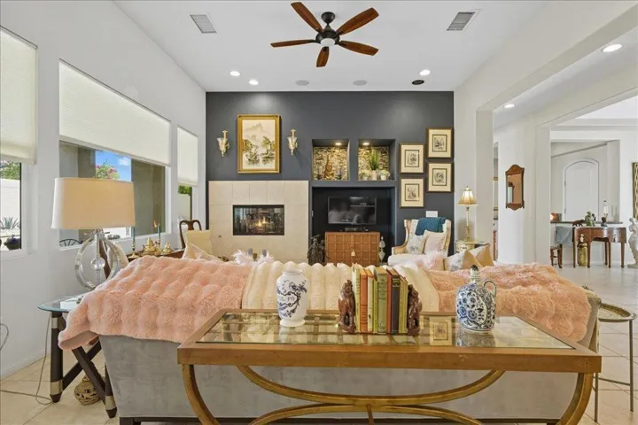 Welcome to our desert retreat in Brenna at Capri Palm Desert! This home is filled with history, heart, and hospitality. From antique treasures collected over time to the relaxing pool and spa in the backyard, we hope you feel both inspired and at home. Home features a bright open floor plan since you enter the spacious front courtyard, a formal dining and living room with its own wet bar and dual fireplace, this floor plan opens up to the beautiful back yard for an easy access. The spacious kitchen opens up to the family area and breakfast nook, 3 large bedrooms PLUS a Den/office. The large main bedroom has his/hers closet, large bath with dual vanities, glass shower and a jacuzzi.The outdoor with stunning mountain views, a large salt water pool/spa, ample space for entertaining and a few citrus trees. AC units and pool system are less than 5 years old.