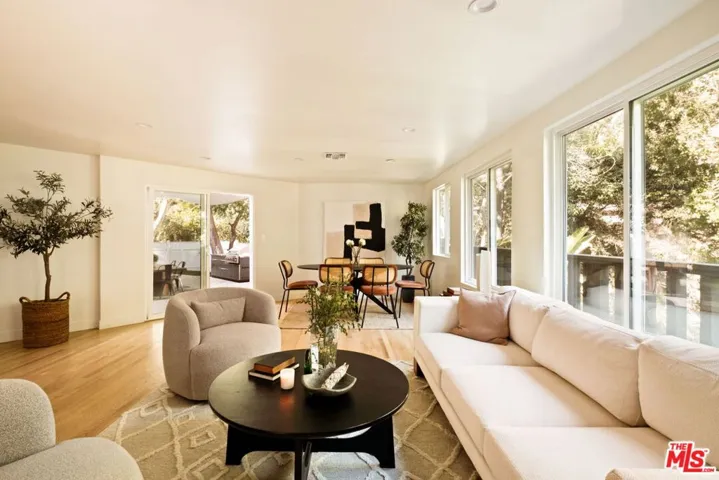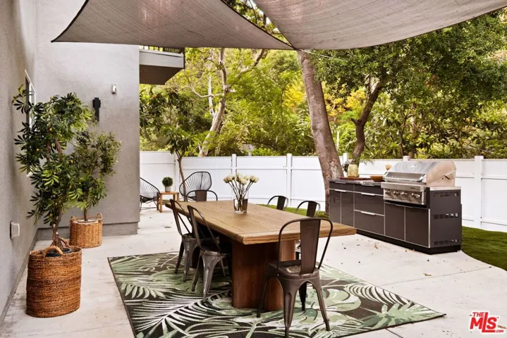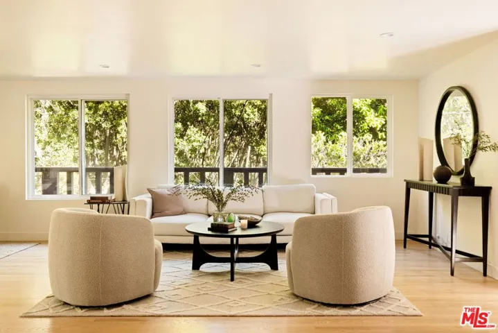 Tucked away on a quiet cul-de-sac in coveted lower Nichols Canyon, this private and scenic retreat offers the perfect blend of comfort, style, and tranquility. Surrounded by lush, mature landscaping, the home welcomes you with warmth and sophistication. Inside, you’ll find 4 bedrooms and 3 bathrooms thoughtfully designed for modern living. Gorgeous white oak floors flow throughout the home, setting an elegant tone, while a cozy fireplace adds charm to the living spaces. The chef’s kitchen is a true centerpiece, featuring stone countertops, sleek terrazzo floors, and a generous walk-in utility/pantry for added convenience. The versatile office opens to the front patio, providing an inspiring work-from-home setting. The serene primary suite offers a spacious walk-in closet and a spa-like bath with double vanity, creating your own private oasis. The inviting family room is perfect for relaxing or entertaining, complete with a built-in bar for seamless hosting. Step outside to multiple patio areas designed for year-round enjoyment, including a built-in BBQ, all set within a tranquil, verdant backdrop. A rare offering in one of the canyon’s most peaceful enclaves where privacy, nature, and elevated living converge.