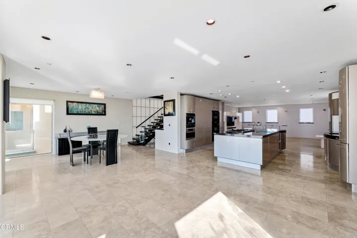 Nestled along the shores of Hollywood Beach. This custom-built modern oceanfront home, crafted with meticulous attention to detail. A floating glass staircase, a work of art in its own right, guides you through each level. The heart of the home, the kitchen, is a haven for culinary enthusiasts. Snaidero cabinetry from Italy, Meile appliances, and stone countertops beckon the chef within to create culinary delights against a backdrop of ocean views and salty breezes. From almost every corner, the azure waters of the ocean and the tranquil silhouette of nearby islands paint a mesmerizing picture. Whether you’re in the master bedroom, feeling as if you’re on a perpetual tropical vacation, or lounging in the living area, every moment is accompanied by the soothing melody of waves crashing against the shore. Hollywood Beach, a hidden gem nestled between Malibu and Carpinteria, offers more than just scenic beauty. Its quaint streets are adorned with charming restaurants, lively pubs, and a bustling farmers market, inviting you to explore the coastal treasures that lie just beyond your doorstep. This coastal oasis, built with passion and vision in 2006, redefines luxury living with its panoramic ocean views and seamless indoor-outdoor connection. Floor-to-ceiling windows capture the ever-changing canvas of the sea, while custom architectural features, like the floating steel staircase, elevate the aesthetic allure. The home’s interior bathes in natural light, courtesy of custom Kalwall panels and strategically placed skylights. Heated Seagrass Limestone flooring adds a touch of warmth, while a Bang & Olufsen sound system fills the air with melodious tunes, creating an ambiance of pure bliss. Entertainment awaits on every level, from the oversized bedroom on the sand level, perfect for guests quarters, to the main level’s oceanfront area with its cozy fireplace and surround sound system. . Upstairs, two guest bedrooms offer luxurious retreats, each with an en-suite bathroom featuring Japanese soaking tubs and heated floors. The primary suite has unobstructed ocean views, a cozy fireplace, and a spa-like bathroom complete with a lighted and jetted soaking tub. In this coastal haven, every detail is thoughtfully curated, every space a testament to the beauty of oceanfront living. Welcome to a life of luxury, where the sea meets the sky, and every day feels like a dream on Hollywood Beach.