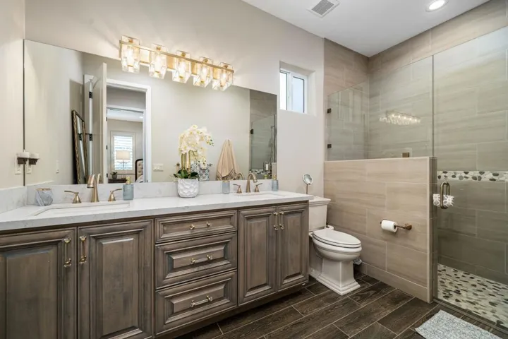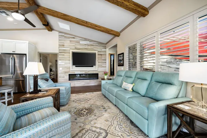 Spectacular Desert Shores Resort Property. Newer remodel + newer Guest Suite Addition! (2) Retreats + (3) 3/4 baths.2 Solid Covered Patios and Pool and Spa!One of the finest offered in this Luxury RV Resort. Class A motorhome 36′- 45′ requirement.Guarded Community with clubhouse, pool, fitness, tennis, pickleball, bocce ball and buddy pad for your friends to stay.
