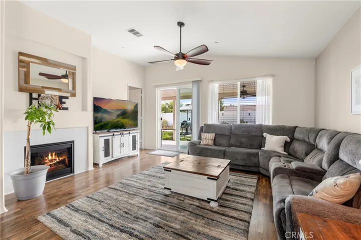 Step outside to your private backyard oasis, complete with turf landscaping, fruit trees as well as grapevine and covered patio, with dual ceiling fans—a perfect setting for outdoor relaxation or entertaining.