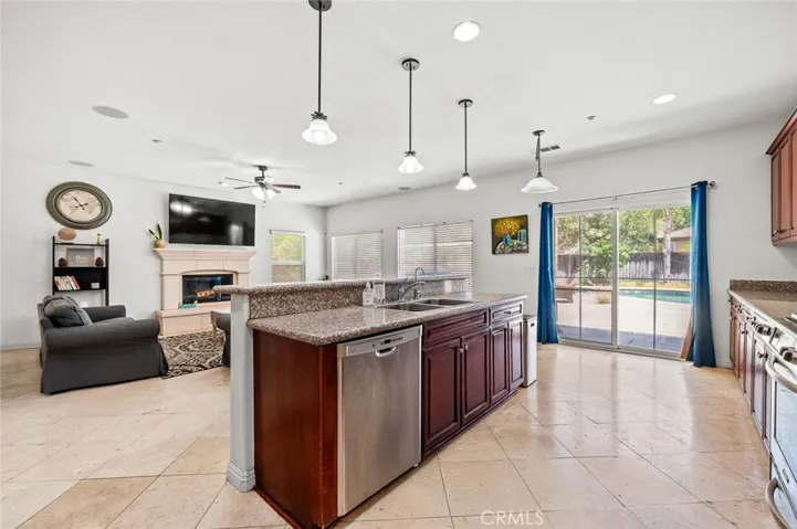 Located in a desirable Riverside neighborhood, this spacious five-bedroom pool home offers a bright, open floorplan with recessed lighting and upgraded tile flooring. The gourmet kitchen features granite counters, wood cabinetry, stainless steel appliances, and opens to a welcoming family room with a cozy fireplace.