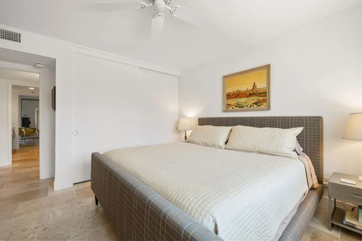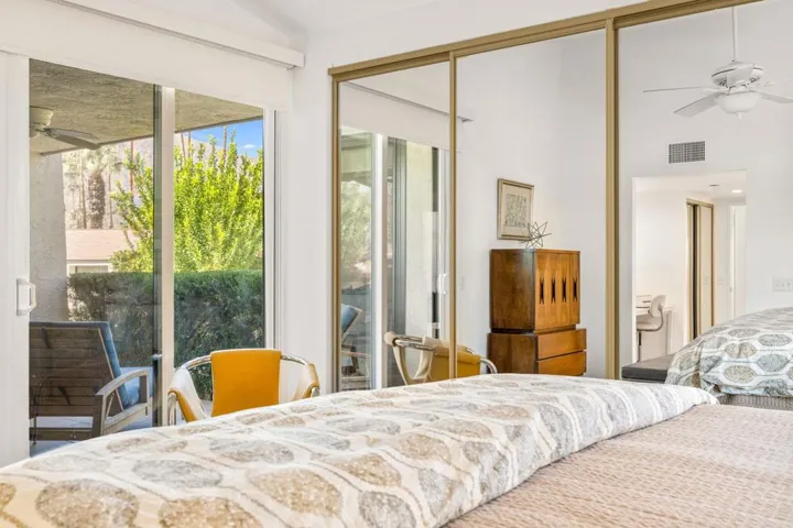 Experience classic Palm Springs living in this stylishly updated Canyon South 1 condo, designed by noted architect Laszlo Sandor. Built in 1974, this 2-bedroom, 2-bath home spans 1,325 sq. ft. with clean lines, soaring ceilings, and mountain views throughout. Upgrades include a refreshed kitchen, renovated bathrooms, and updated windows and sliders. Stone tile floors extend to two private patios, both with mountain views. Fully equipped with laundry and a one-car garage, this home is move-in ready. Canyon South 1 features three pools and spas, and a conveniently located south Palm Springs setting just minutes from Smoke Tree Village, Koffi, and downtown Palm Springs. HOA dues include water, trash, exterior pest control, roof, and exterior paint. Ideal as a full-time residence or weekend getaway, this condo blends architectural style with easy desert living.
