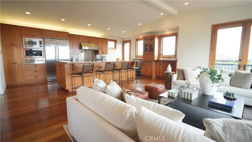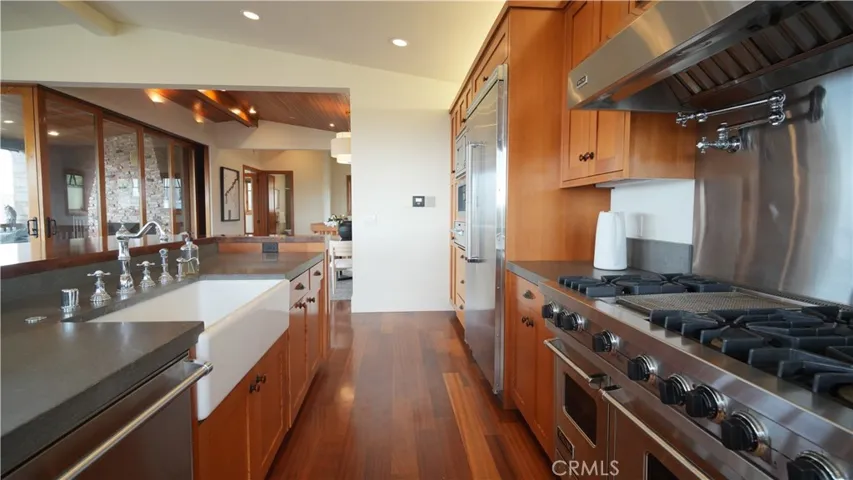 Culinary enthusiasts will be enchanted by the gourmet kitchen, which is a true chef’s paradise. Adorned with stunning stone countertops and Viking and Miele appliances, it also boasts wall-to-wall windows that frame breathtaking panoramic ocean views, creating an inviting space for both cooking and entertaining.