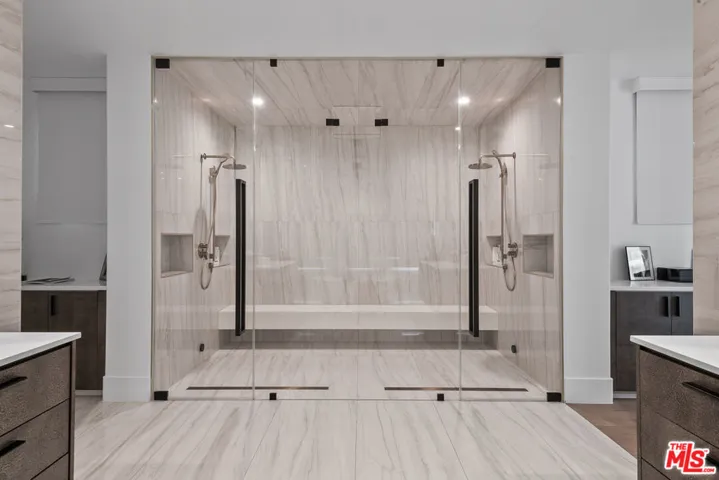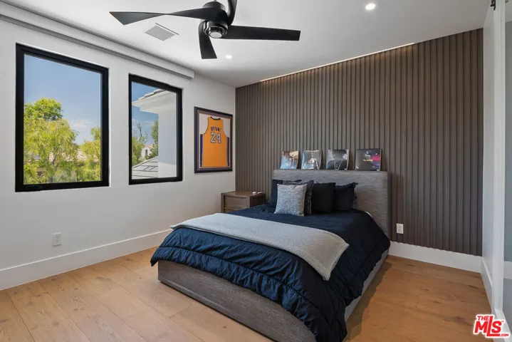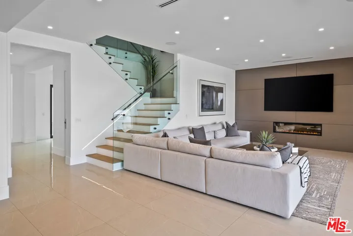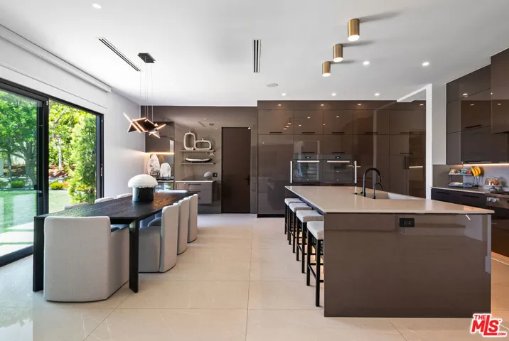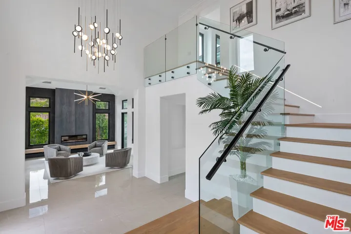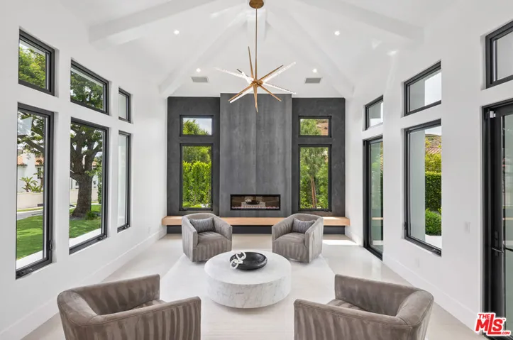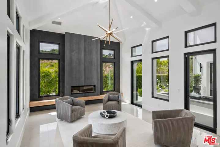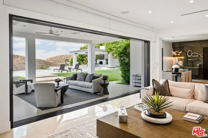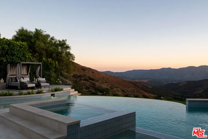 An extraordinary fusion of refined design and uncompromising craftsmanship, this fully reimagined modern estate in Calabasas sets a new standard for luxury living. Situated on a coveted view lot, this show-stopping residence has been transformed with a curated blend of bold architecture, top-tier finishes, and seamless indoor-outdoor flow offering an elevated lifestyle of sophistication and ease. Upon entry, you’re greeted by expansive open living spaces adorned with brand-new designer flooring and striking iron-framed doors and windows that flood the interiors with natural light. The stunning chef’s kitchen, outfitted with custom Miele built-ins, is a sleek centerpiece for both everyday living and elevated entertaining. Floor-to-ceiling pocket doors fully retract, unveiling a resort-style backyard with sweeping vistas, an infinity-edge pool, spa, baja shelf, and a covered casita with fireplace perfect for alfresco dining or relaxing beneath the stars. The primary suite is a serene sanctuary with spectacular views, two custom walk-in closets, and a spa-inspired bathroom that features radiant heated floors, floor-to-ceiling mirrors, ambient lighting, and an oversized steam shower for ultimate relaxation. A state-of-the-art home theater with immersive 8K projection delivers a cinematic experience beyond compare, while a full-property Sonos audio system, indoor and outdoor TVs, and new amplifiers provide entertainment throughout. Every detail of this estate has been elevated with thoughtful upgrades. The exterior has been transformed with new landscaping and landscape lighting in both the front and back, along with newly installed water fountains and tranquil features that enhance the ambiance. The entire home has been freshly painted inside and out, and the newly refinished driveway and courtyard now showcase custom tile and elegant hardscape design. Additional highlights include a brand-new soft water and saltwater filtration system, new pool equipment, and an advanced surveillance camera system with alarm integration for top-level security. The spacious garage has also been upgraded with new custom doors, high-end epoxy flooring, and built-in cabinetry for exceptional storage and style.This is a rare opportunity to own a one-of-a-kind modern estate in one of Calabasas’ most sought-after communities where bold design meets effortless elegance, and every element has been masterfully executed for the most discerning buyer.