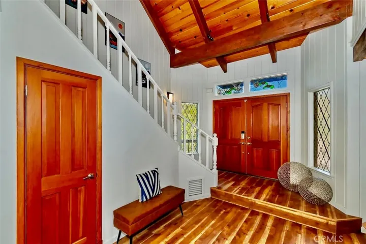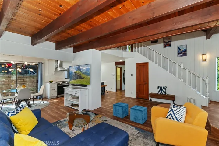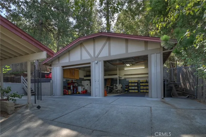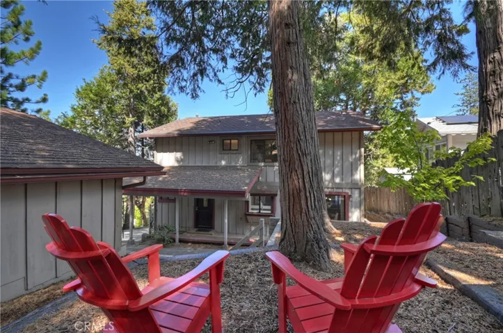 Beautifully Remodeled San Moritz Area Home with a Huge Oversized Garage & Stunning Views, Tastefully Upgraded to Seamlessly Blend Top-of-the-Line Finishes with Luxury, Warmth, & Mountain Charm! The property backs to acres of Thousand Pines Camp land and features a fully fenced, terraced, and highly usable yard offering both privacy and a lush forest backdrop. A gated driveway with remote control provides peace of mind, while the large gentle driveway allows ample parking and convenient level-entry access directly into the main level of the home. Inside, the main level features a stunning chef’s kitchen with custom cabinetry, quartz countertops, beveled subway tile backsplash, stainless steel appliances, coffee bar, and a large center island. The kitchen flows seamlessly into a spacious dining area that opens directly to the covered back patio, perfect for entertaining or quiet mornings. An open living room and separate family room—both with distant ridgeline views—are filled with natural light that flows gracefully throughout the day, creating an ever-changing warmth and ambiance. The family room is anchored by a cozy gas fireplace and warm T&G wood ceilings, while a powder room, laundry room, and welcoming foyer with dramatic vaulted T&G wood ceilings and handcrafted oak stairway complete the main level. Upstairs, the spacious primary suite is a tranquil private retreat, featuring a seamless glass walk-in shower with elegant tilework, custom vanity cabinetry with built-in shelves, dual sinks with quartz countertop, and a private deck with amazing ridgeline views. Two additional generously sized bedrooms include a guest room with stunning mountain vistas and abundant natural light. A versatile loft serves as a bright workspace/office nook with a built-in desk, overlooking the tree-scaped backyard and forest beyond. Completing the upstairs is a beautifully appointed full guest bath with custom vanity and quartz countertop combining function with refined style. The oversized 720-square-foot garage provides abundant storage, a half bath, hardwired plug/circuit for a backup generator—perfect for a workshop, hobby space or potential ADU. Custom cabinetry, quartz counters, updated plumbing fixtures, new water heater & new high efficiency furnace, luxury vinyl floors, and plush carpet complete the home. This exquisitely remodeled home combines luxury, warmth, and mountain serenity with picturesque surroundings. Experience it in person and make it your own!