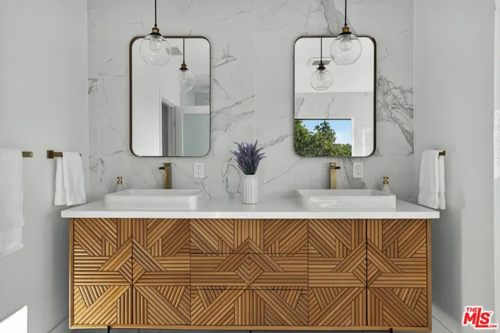 Transport yourself to the hills of Glassell Park, where 2603 Crestmoore Pl beckons as your own private sanctuary. // Encompassing almost an acre of predominantly flat, verdant terrain with fruit trees and xeriscape, this distinguished, recently-renovated, turnkey compound features a 3,508 sq. ft. main residence, a 1,000 sq. ft. permitted ADU, and a generously sized finished 3-room basement offers boundless possibilities and gracious living. // Step into a world of luxury within the open concept main residence, where the light-filled formal living and dining room with voluminous vaulted ceilings set the stage for elegant gatherings and well-proportioned bedrooms invite restful nights. The spacious family room with its balcony frames breathtaking skyline sunsets, a perfect perch for sipping wine as the day fades. The heart of the home is the grand kitchen: a chef’s dream with a large island adorned with waterfall quartz edges and designer appliances. Envision hosting lavish dinner parties here, the aroma of gourmet dishes filling the air, or enjoying breakfast with loved ones as morning light spills in. // Discover three downstairs bedrooms, including a secondary master suite crafted to welcome in-laws or guests, as well as a well-appointed spacious laundry room, equipped with ample storage and counters for folding. // Ascend to the upper level, where two additional bedrooms await, including the preeminent master suite, which features an integrated living area, a spa-inspired bathroom with oversized freestanding tub offering views of the city skyline, and walk-in closet. A loft area, with its stunning built-in bookshelves and rounded arches, transforms into your personal library, where you can lose yourself in a good book amidst timeless elegance. // Step outside onto the side deck off the dining room, where morning coffee becomes a ritual, surrounded by the delicate bloom of white iceberg roses. The expansive backyard, a masterpiece of outdoor living, features built-in seating for memorable entertaining and seamlessly connects to the 1,000 sq. ft. ADU. This versatile annex, equipped with a full kitchen, bathroom, and in-unit washer/dryer hookups, offers myriad possibilities: a private retreat for extended family, a lucrative rental or Airbnb generating monthly income, or an entertainment venue tailored to your desires. Its retractable sliding doors open to a stunning low-maintenance backyard with concrete pavers and artificial lawn, illuminated by twinkling cafe lights and framed by fragrant jasmine plants, creating an enchanting alfresco oasis. The flat lot can even comfortably accommodate a future pool. Rounding out this incredible estate are installed solar panels that ensure low energy bills. // Conveniently located close to Downtown Los Angeles and Pasadena, this property offers an escape enriched by the neighborhood’s proximity to premier attractions. Glassell Park has emerged as one of Los Angeles’ most vibrant neighborhoods. A short walk leads to community barbecue pits, a lit baseball diamond, basketball and tennis courts, a children’s play area, picnic tables, and a year-round pool. The neighborhood’s culinary and bar scene is a treasure trove, including Michelin-rated Dunsmoor and Wife and the Somm, as well as The Grant and Verdugo Bar. // 2603 Crestmoore Place is more than a home. It is a private retreat, a gathering place, and an estate that offers endless flexibility for the way you want to live today, tomorrow, and next year. Imagine the life you’ll build here: your personal getaway where every detail whispers luxury and every moment feels like a celebration.