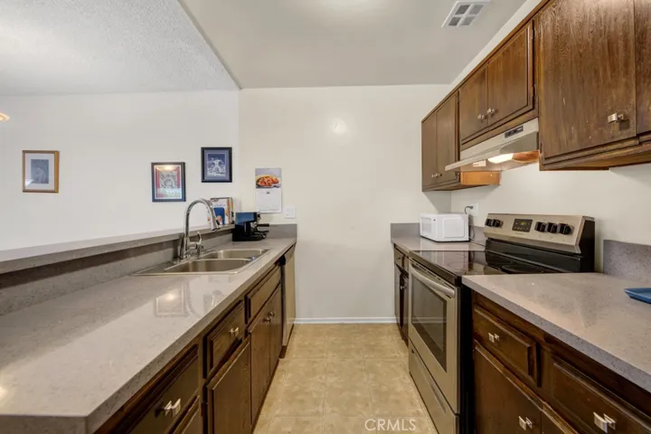 This is a great deal!! Beautifully updated 1-bedroom, 1-bath condo located in a prime Encino location just off Ventura Boulevard, close to restaurants, grocery stores, and countless amenities. This quiet interior unit is set away from the street and features a spacious living room that opens to a balcony with views of lush, landscaped gardens. The open-concept layout seamlessly connects the living, dining, and kitchen areas, featuring quartz countertops in the kitchen and an updated bathroom with a newer vanity, freshly coated shower/tub, and a brand-new glass door. The controlled-access building offers a sparkling pool and spa, a fully equipped gym, a community BBQ area with tables, and secure gated parking—all within a beautifully maintained complex. This unit’s HVAC system was replaced in 2022!