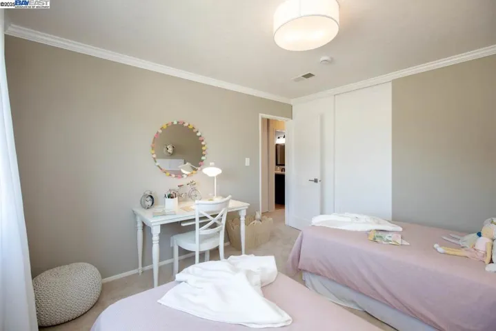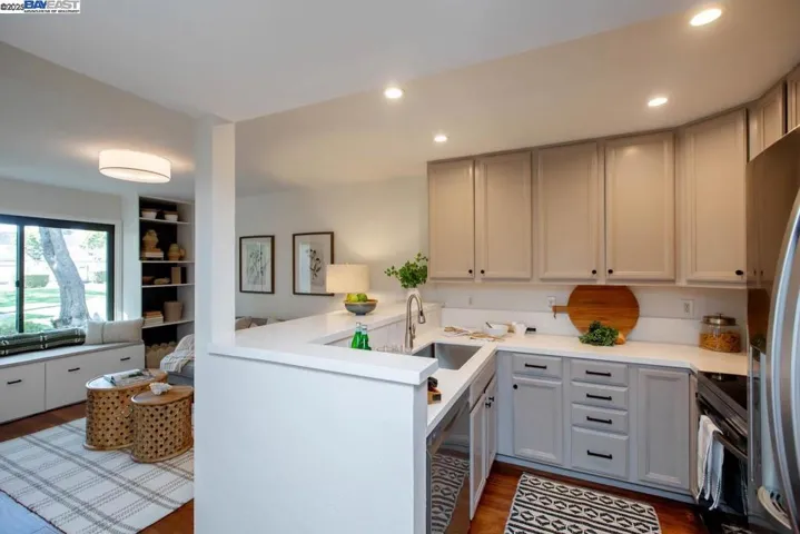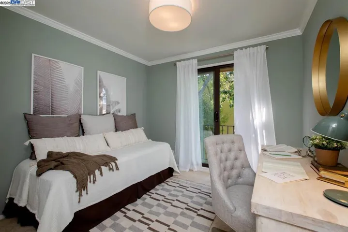 Located in Bay Farm Island’s well-established Casitas HOA community, this attractively updated 2-story townhome is literally just minutes to highly ranked schools, Harbor Landing shopping (Safeway/Starbucks), the SF Bay trail and the SF Ferry for a unique and effortless commute into San Francisco. Unusually spacious at 1,628 square feet (per public records), the home features 4 bedrooms, 2.5 bathrooms, a living room/dining room combination, laundry room, an open kitchen/family room, a 2-car garage with custom storage cabinets, and a private patio/garden. Features include crown moulding, dual-pane windows, a fireplace, engineered hardwood floors on the main level, and new light fixtures and a freshly painted interior throughout (both 2025). The kitchen and bathrooms were updated with attractive, timeless finishes and materials. The large primary bedroom has an ensuite divided bathroom plus sliding doors that open to a Juliet balcony and provide a view of the common area’s well-maintained and attractive landscaping and pathways. All bedrooms have nearly new carpeting (2021), and closets with custom organizers for plenty of storage. HOA amenities include a community pool, clubhouse, and playground. Enjoy resort-like living from this move-in-ready home in a desirable Bay Farm Island
