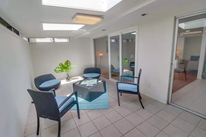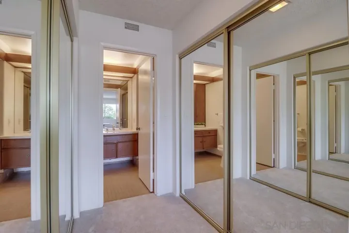 Beautifully maintained 2BR/2BA single-level home in highly desired Collwood Park community that offers a serene retreat. Enjoy a prime location within the development, set back from the road and overlooking one of the 3 private pools with scenic community views. The spacious & functional floor plan includes a desirable enclosed patio room, adding to the already spacious living area. The large primary master suite features pool views, double closets, a private bath, & new carpeting. The second bedroom also overlooks pool views, new carpeting, & convenient access to the full hall bathroom. The large living room, complete with a fireplace, flows seamlessly to the dining area, patio room, & kitchen. The kitchen shines with newly installed stainless-steel appliances & ample cabinet space, conveniently located just off the attached one-car garage. Additional permit parking spaces are available for residents. Sharing only one wall, this residence offers the privacy of a nearly detached home with all the benefits of condominium living. Highlights include a completely updated HVAC system, solar tube lighting, upgraded flooring, fresh paint, beautiful mid-century modern wood cabinets, & abundant storage. Enjoy the convenience of a private washer/dryer in the garage & a newer water heater. Collwood Park, a low-density community spanning 26 acres, offers 3 large pools (one heated year-round), two spas, a clubhouse, walking paths, & lush landscaping. This property’s central location provides easy access to SDSU, freeways, shopping, dining, & the beaches.