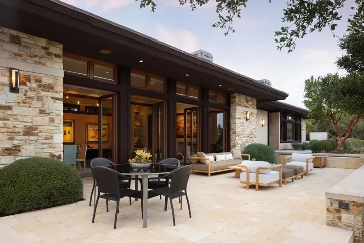 Set amongst the rolling hillsides of Clint Eastwood’s world-renowned Tehama Golf Club, this exceptional 6,949 SqFt estate offers 5 bedrooms, 5.5 baths and premium craftsmanship throughout. Built in 2007, the home features San Ardo stone exterior, Jerusalem limestone floors, and rich wood accents. The chef’s kitchen boasts custom Eggersmann cabinetry from Germany, while Italian Rimadesio closets and Konnen GlasHaus windows highlight bespoke design. Expansive living areas include 4 interior fireplaces, a media room with 4K projection, and seamless indoor and outdoor flow to terraces, fire pits, and 2 pools – a lap pool and cold plunge, plus a spa. Modern living includes enterprise-grade 1 gigabit internet and internet-enabled whole-house automation, including a Lutron lighting system, Yamaha MusicCast audio, and Honeywell security with Nest cameras. Energy efficiency shines with a full solar array, 3 Tesla Powerwalls, and advanced water systems. With a detached 3-car garage, radiant heating, guest house renovations, outdoor entertaining spaces, and a plumbed Ooni pizza oven, this property blends elegance, technology, and comfort in one extraordinary residence. Just minutes to world-class beaches, shopping, and restaurants, this is an incredible opportunity for Carmel luxury living.