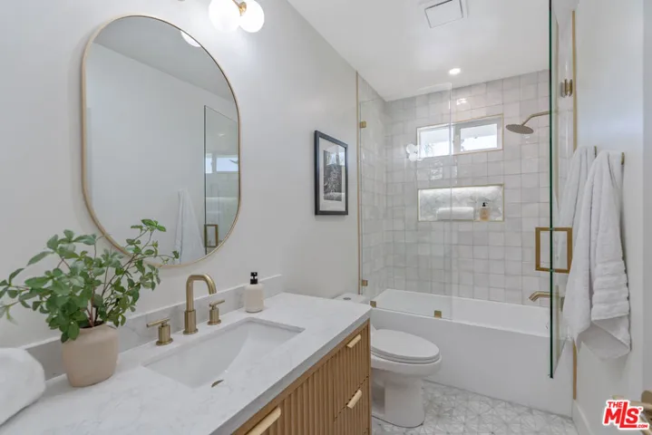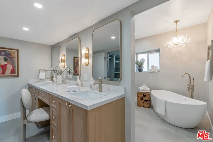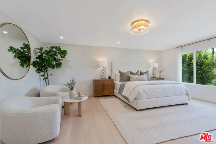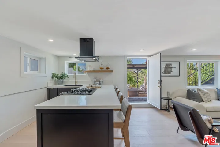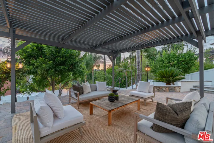 Discover the timeless beautify of 4825 Galendo Drive – A fully Remodeled Woodland Hills Estate with Sweeping Views. Located South of the Boulevard in one of Woodland Hills’ most desirable neighborhoods, this beautifully remodeled residence offers over 4,000 sq. ft. of living space with soaring ceilings and panoramic views of the mountains and treetops from nearly every room. 4825 Galendo Drive has been fully reimagined as a brand-new home offering a one of a kind living experience with a curated interior design. Every detail of this single story 6 bedroom 4 bathroom residence has been thoughtfully upgraded inside and out – including dual primary suites with expansive walk-in closets and spa-inspired baths. The impressive vaulted-ceiling family room is centered by a custom fluted fireplace and includes a built-in bar area, while the dining room captures stunning sunset views. A chef’s kitchen with a large center island, premium appliances including a Thermador range and a charming breakfast room with custom built-ins completes the main living area. A sweeping balcony extends off the main level, offering serene vistas and seamless indoor-outdoor living. The lower level provides a full guest/entertaining suite complete with its own kitchen, bedroom, and full bath, ideal for visitors, extended guests, or multi-generational living. The backyard is designed for resort-style entertaining, highlighted by a covered patio, sparkling pool with waterslide, and cascading spa set against a backdrop of tranquil canyon scenery. This home combines elegance, versatility, and breathtaking views in a prime Woodland Hills location.