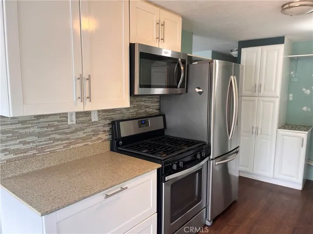 As you enter, you’ll be greeted by a beautifully renovated kitchen featuring newer cabinets, elegant granite countertops, and modern appliances, including a sleek French door stainless steel refrigerator, a propane cook stove, and an above-stove microwave/vent for your convenience. The open layout flows seamlessly into the living spaces, adorned with laminate flooring throughout, providing both style and easy maintenance.