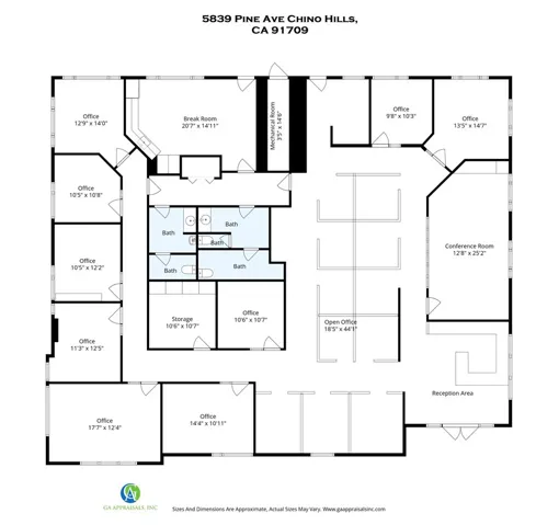 Located in the vibrant heart of Chino Hills, California, 5839 Pine Avenue presents a premier commercial real estate opportunity for businesses seeking a professional and well-maintained office space. Offering 4,412 square feet within a clean, organized business complex, the property is surrounded by lush, tree-lined landscaping and features ample on-site parking for staff and visitors. The building is ADA compliant, with a dedicated ramp and accessible parking directly in front, ensuring ease of access for all. Delivered vacant and ready for immediate occupancy, the space allows for flexible interior customization to meet a wide range of business needs. The layout includes a welcoming reception area, a spacious conference room, a fully equipped kitchen and breakroom, two restrooms—one with two stalls and a sink, and another with one stall, one urinal, and one sink—alongside ten private offices and eleven cubicles designed for collaborative or individual work environments. Prominent signage opportunities provide excellent brand visibility to passing traffic, enhancing exposure and recognition. Conveniently located near the 71 Freeway and within close proximity to popular restaurants, retail centers, and essential amenities, the property offers both accessibility and a desirable location for clients and employees. Situated within a professional business park that offers shared services. Prospective buyers are encouraged to verify zoning suitability prior to submitting an offer.