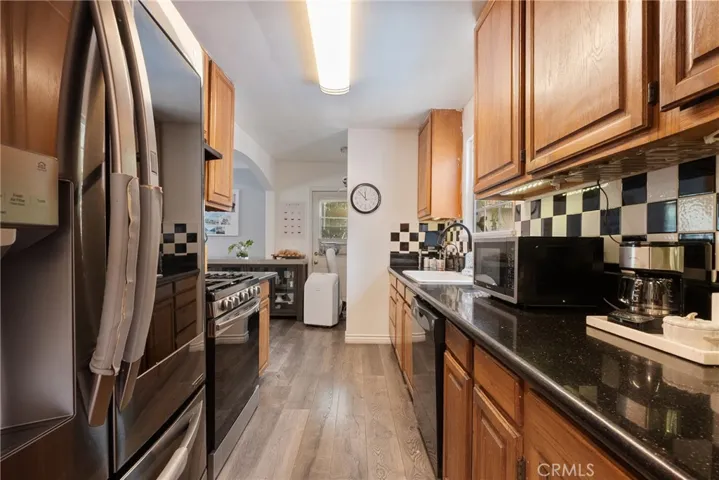 The bedrooms are generously sized, providing flexibility for a home office, guest room, or creative space. Recent updates include a newer roof (2016) and an upgraded 220-amp electrical panel. Outdoors, the large, fully paved backyard provides a blank canvas for entertaining, outdoor living, or future additions. A spacious rear driveway—able to accommodate up to four cars side by side—along with a detached garage with alley access adds versatility, whether for parking, storage, or the creation of a Jr. ADU or detached ADU. The garage has been converted into a 5th bedroom with a walk-in closet (non-conforming), and the property may also qualify for SB 9 subdivision (buyer to verify).