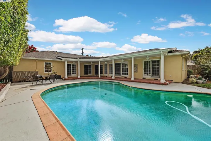 OPEN HOUSE SAT AND SUN OCT 4 & 5 1-4 pm Seldom available single level rancher on a level 1/4 acre lot! Parklike backyard with swimming pool, and garden, plus a playhouse! Located on a quiet cul-de-sac this 4-bedroom, 2.5 bath, double car garage home features an open concept floor plan with a huge family room and kitchen that looks out to the covered brick patio and pool. The home features vaulted wood beam ceilings in the living room and dining room, a marble fireplace, hardwood floors throughout, the kitchen with breakfast bar, 5 sliding glass doors, and a private primary suite. Also a huge family room with a raised hearth brick fireplace a, 1/2 bath. This home has endless possibilities for entertaining and fun and possible ADU’s like other homes in the neighborhood. Close to all award winning schools, shopping and transportation. It’s a rare gem!! Views: Downtown