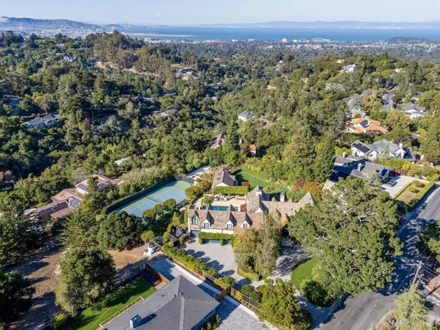 A BREATHTAKING TROPHY ESTATE BLENDING TIMELESS ELEGANCE WITH RESORT-STYLE LIVING. This architectural masterpiece offers an extraordinary layout designed for both grand entertaining & intimate daily life. Sweeping driveway & motor court lead to 2 garages with car lifts ideal for collectors. The outdoor retreat features an infinity-edge pool, spa, expansive pool deck w/ designer pergola, full outdoor kitchen & BBQ, tennis court, guest house, bocce court, rose garden & a dedicated childrens play area. Inside, a dramatic foyer opens to soaring ceilings, a formal living room bathed in natural light, a grand dining room, chefs kitchen w/ breakfast nook & spacious family room. A luxe billiard room w/ wine bar, elegant sitting room, private office & guest suite complete the main level. Upstairs, the primary suite stuns w/ romantic fireplace, spa-inspired bath & oversized walk-in closet. 3 addl ensuite bedrooms & attic storage offer comfort & flexibility. The lower level is a true entertainers dream featuring a cinema-quality home theater, game room & kitchenette. This residence delivers unmatched elegance, scale & lifestyle in one of the Bay Areas most prestigious settings.