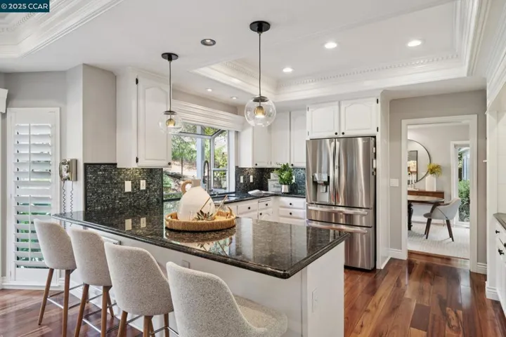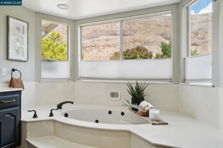 Exquisite home situated at the end of a quiet cul de sac, on a 1/3-acre lot that backs to tranquil open space. Located in the highly desirable Diablo Highlands Estates, this coveted Glen Castle model offers 5 bedrooms, 4.5 baths, plus an expansive bonus/theatre room. Elegant foyer with a sweeping staircase. Ample formal living room, dining room; updated kitchen opens to eating area & family room. Main level au pair suite has a full bathroom and walk in closet. Total 3 bedrooms have ensuite bathrooms. The expansive primary retreat is a sanctuary with a cozy sitting area, fireplace, 2 walk in closets, a dedicated shoe closet, and a private balcony. Sprawling yard with hot-tub, fire-pit, pizza oven, kitchen, and oversized recently built shed. 3-car garage. Sat 12-3; Sun 2-4.