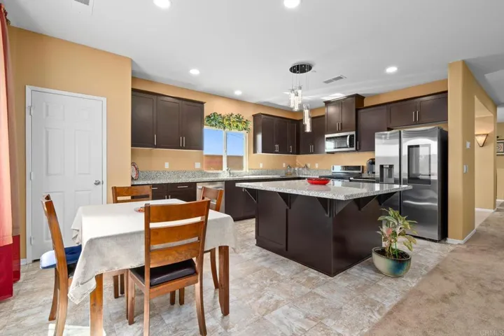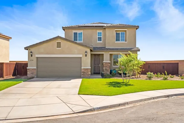 A Fresh Start Awaits at 2504 Vista Del Mar Lane. Tucked into the desirable Monterey Park community of Imperial, this newly built 2024 residence is more than just a home; it’s a canvas for your life. Designed with both beauty and function in mind, every space offers a sense of warmth, comfort, and possibility. From the curb, the home makes a striking first impression. A corner lot with no neighbors behind means added privacy and wide-open skies, while the clean lines of the exterior set the tone for the modern living within. Step inside and the story unfolds: a thoughtful layout with five bedrooms and three full bathrooms, including a bedroom and bathroom downstairs, perfect for overnight guests, multigenerational living, or a flexible home office. The formal dining room is a centerpiece of the home, dressed with a bold designer wallpapered accent wall that lends a hint of luxury, and framed by elegant double doors that swing open to welcome in fresh breezes and evening light. It’s the kind of space that elevates even an ordinary family dinner into something memorable. At the heart of the home, the kitchen is equal parts stylish and functional. A generous center island invites conversation as meals are prepared, while sleek quartz countertops, rich cabinetry, and stainless-steel appliances bring a modern polish. Open sightlines connect the kitchen to the living spaces, making entertaining effortless and family life flow with ease. Upstairs, the bedrooms offer retreats of their own. The primary suite feels like a sanctuary, offering a beautiful skyline view and providing a peaceful retreat at the end of the day. Meanwhile, additional bedrooms ensure that everyone has a comfortable corner to call their own. Lifestyle details are woven throughout. The spacious three-car tandem garage has been finished with new painted walls, ceiling, and epoxy flooring, making it both practical and polished. A paid solar system and tankless water heater keep utility bills surprisingly low. At the same time, the side yard offers room for RV parking, a highly desirable feature for desert adventures, motorhomes, and weekend getaways. Step into the backyard and you’ll find a blank canvas, ready for your vision. With no homes behind you and only one neighbor on the left and a park with a walking trail on the right side, there’s room to dream: a pool, a garden, or simply a quiet place to sip coffee as the sun rises over Imperial Valley. Set within a top-rated school district and surrounded by a welcoming community, this home is more than just walls and rooms; it’s about a lifestyle. A place where gatherings are easy, where energy-efficient design supports modern living, and where the space around you feels as inviting as the people within it. 2504 Vista Del Mar Lane is waiting for its next story. Maybe it’s yours.