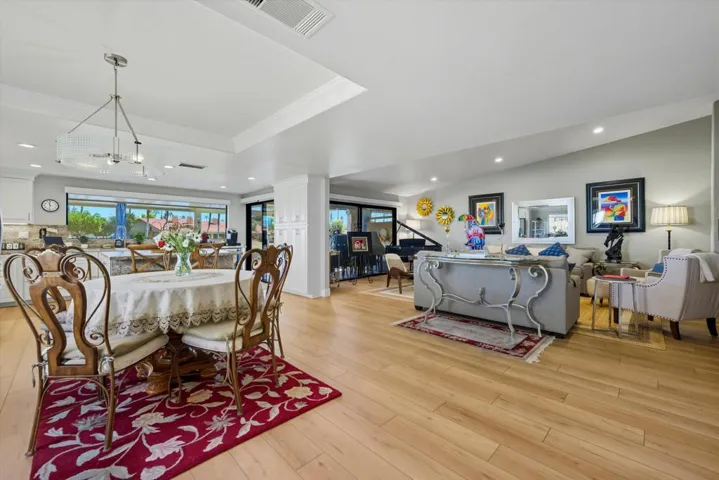 BEAUTIFULLY REMODELED home in the friendly Chaparral Country Club community! This 3BR/3BA END UNIT features the ever-popular open style kitchen with an OVERSIZED PICTURE WINDOW, large granite island and WOOD PLANK STYLE FLOORING. Bright white cabinets, crown molding and updated doors/hardware throughout. 3RD STALL GARAGE! Motorized window coverings in the kitchen and living room, crown molding and canned lighting. Inviting TILED PATIO with a lumawood trellis and VIEWS of the 13th fairway and lake! UPGRADED BATHS! Chaparral is centrally located in the heart of Palm Desert featuring an 18-hole golf course designed by Ted Robinson, a full-service restaurant, fitness center along with tennis/pickleball courts. Just a short drive to the famed El Paseo shopping district.