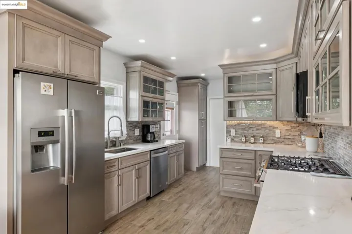 Welcome to this Exceptional Bay View Residence, ideally situated in the heart of El Cerrito. Moments from walking paths and scenic hiking trails, this home masterfully blends timeless charm with modern sophistication. Inside, gleaming hardwood floors lead you through beautifully updated living spaces, highlighted by a stunning chef’s kitchen, perfect for everyday living and elegant entertaining. The spacious living room seamlessly extends to the rear deck through an impressive 12-foot wall of glass accordion doors opposite sweeping Bay Views. Multiple outdoor spaces invite you to relax and entertain, from the expansive front porch to private decks that open from nearly every room. Skylights throughout bathe the interiors in natural light. Enjoy unobstructed panoramic vistas of the Golden Gate Bridge, San Francisco skyline, sailboats, ships, and windsurfers. Each sunset is a breathtaking masterpiece. As a remarkable bonus, this property includes a beautifully updated 449 sq. ft. Bonus Studio complete with a full kitchen and bath, perfect for extended family, guests, or rental income. Close to BART, bus lines, shopping, and local amenities just minutes away, this home is a sanctuary of comfort, beauty, and possibility. A true dream home, ready to be cherished for years to come.
