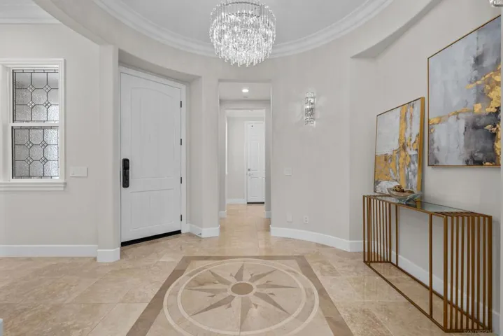 Your Dream Home Awaits in Encinitas Ranch-Welcome to the pinnacle of modern coastal living, this is not just a home it’s a luxury lifestyle embraced by breathtaking coastal beauty and thoughtfully designed comforts. This stunning, fully recently updated 5 BED 5.5-BTH with 4 car Garage. Encinitas dream home is thoughtfully designed with high-end upgrades and seamless indoor-outdoor flow. Spectacular Ocean Views from the backyard and the master bedroom’s private deck. FIRST FLOOR BEDROOM perfect as an office, gym or private guest retreat. Dramatic High Ceilings create a bright, airy atmosphere. Gourmet Kitchen with new countertops, modern stainless steel appliances. Resort-Style Backyard featuring a built in BBQ, pergola, built-in fireplace, and expansive entertainment spaces. Elegant Finishes throughout, including crown molding, leaded glass, custom fresh interior & exterior paint, and stylish light fixtures. Each bedroom has its own ensuite bath, creating private retreats for all family members. Spacious Master Bedroom Suite Retreat on the 2nd floor with private deck, panoramic views of the ocean, and spacious spa-like bathroom. OWNED SOLAR SYSTEM for energy efficiency and major cost savings & EV CHARGER. Separate HVAC Systems for upstairs and downstairs. Whole-House Water Filtration System & Central Vacuum Epoxy-Finished Garage. Do not miss out on this prestigious Encinitas Ranch community residents enjoy the beauty of the Encinitas Ranch Golf Course proximity to pristine beaches, top-rated schools.