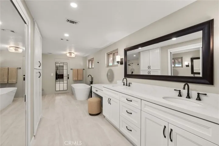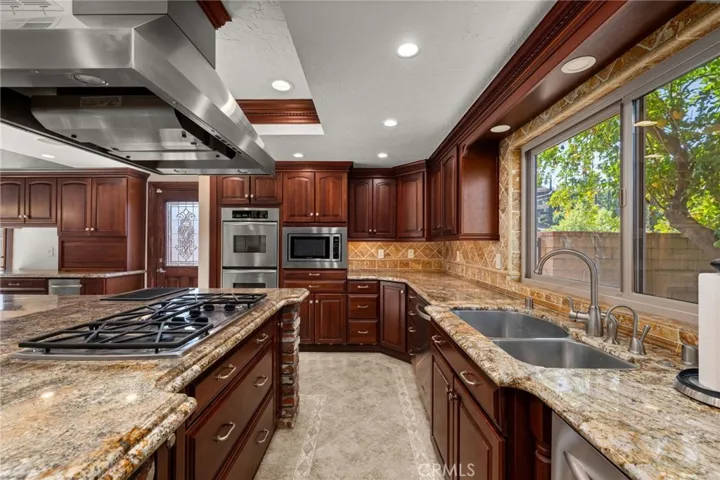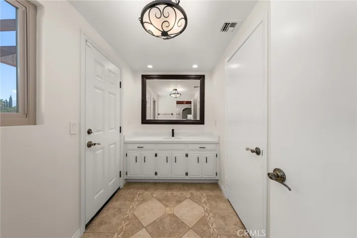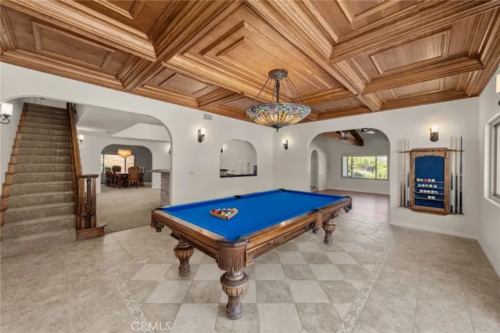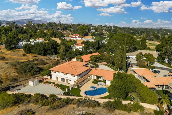 South Redlands five bedroom pool home with an attached seven car garage, detached 3200 square foot garage, and over 5500 square feet of living space on a nearly 50K square foot lot – just a chip away from the green at Redlands Country Club hole six! When you approach the home, you are greeted by a sizable circular driveway at the top of the private street that is Country Club Lane. You enter the home into the formal front foyer, which features the first staircase and vaulted ceilings. This well lit space displays stained glass pieces from local artist, Tom Medlicott. The entry is flanked by two living areas, a formal living room and a family room with an exposed beam ceiling; both of which feature large fireplaces. The family room, which has a direct access into the attached seven car garage (fully finished with tile flooring and a built in air compressor), opens up into the game room. That flows right into the center of the home, where you’ll find a full sized wet bar and a second set of stairs. This space at the center of the home opens up to the second story interior balcony. Opposite the game room is a formal dining area, with direct access into the kitchen. It’s generous layout features tremendous counter space, two dishwashers, a double oven, gas cooktop, wine fridge, prep sink, and plenty of storage. There is also an eat in dining area with a slider leading out into the back yard. Windows and doors throughout the home have been upgraded. Off of the kitchen, you’ll find a large laundry room with additional counter space, a separate sink, more cabinets, and a small built in office area. Heading outside, the pool and spa with a glass mosaic finish serve as the centerpiece of the yard, which also has a gas fire-pit and low maintenance landscaping features. Five bedrooms are upstairs, including the primary suite. A newly renovated bathroom features a sizable dual vanity with a make up counter, a soaking tub, walk in shower, and a separate toilet room. The other bathrooms have been recently upgraded as well with new counters, fixtures, flooring, and lighting. There is a private office space off of the primary bedroom. Heading back outside, the exterior garage space is as impressive as the home. One of the largest private garages in Redlands, this is perfect for your car collection, the ultimate home gym or workshop, multiple class A RVs, or all of the above. Excellent Redlands Schools.