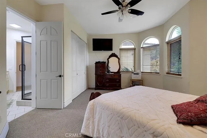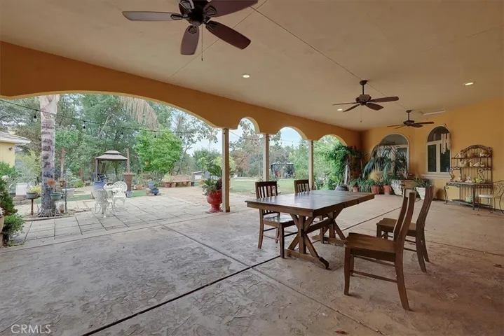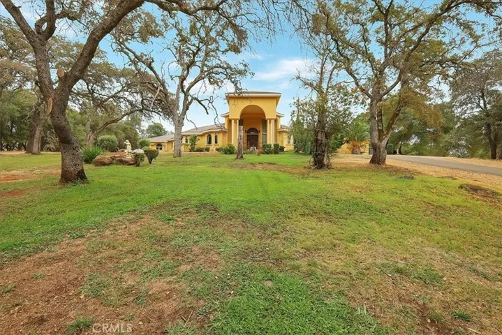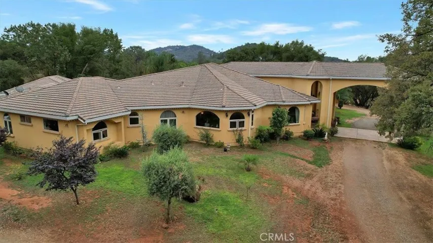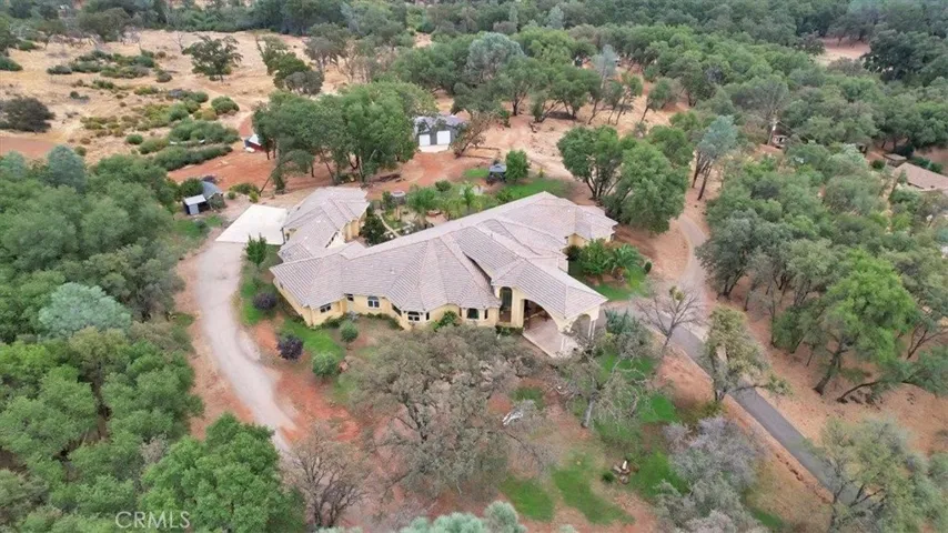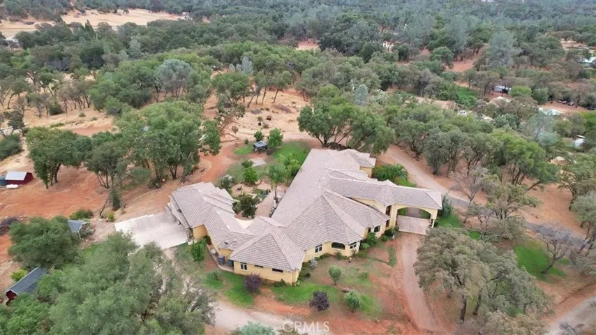 Discover the perfect blend of country beauty & modern comfort in this stunning 6bds, 5ba, 6,106sqft custom estate. Thoughtfully designed for energy efficiency, this property comes w/fully paid solar, three newer A/C units, tankless water heaters, & BVID irrigation. Step inside to an open floor plan that includes an elegant formal living room & three separate family areastwo with cozy fireplaces. The luxurious primary suite features a private sitting area & a spa-like retreat bath w/walk-in shower, dual sinks, & walk-in closet. Entertaining is effortless in the chef-inspired gourmet kitchen, complete w/a commercial-grade gas stove, refrigerator, built-in microwave, dishwasher, spacious island w/sink, dining bar, & plenty of cabinetry. A private bar w/sink and an impressive formal dining room w/its own fireplace & panoramic hill views make gatherings unforgettable. Additional highlights include recessed lighting, ceiling fans, tile flooring, extra-wide hallways, abundant storage, and a 4-car garage. Outdoors, you’ll find an oversized covered patio w/fans, perfect for hosting, plus RV parking, a chicken coop, and a 52′ x 42′ shop w/roll-up doors & electricity. Set on a peaceful property just minutes from Collins Lake, this estate offers spectacular views & serene sounds of nature.