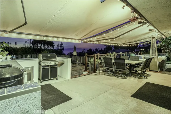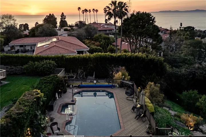 Experience the very best of coastal living in this move-in ready home where privacy, peace, and breathtaking views come standard. Nestled above the ocean, this residence is so private you’ll feel comfortable sleeping with the blinds open to star-filled skies and vibrant sunsets. Step through the grand double doors into an expansive, light-filled open floor plan that blends elegance with ease of everyday living. Walls of glass invite the ocean and hillside views into nearly every room, while the wraparound deck with built-in outdoor kitchen and retractable, lighted awning is perfect for entertaining day or night. The main level is designed for effortless single-level living. The oversized primary suite boasts its own balcony access, dual walk-in closets, and spa-like bath with freestanding tub and dual vanities. Just steps away from the main living area the heated pool and spa extend directly from the heart of the home—your own serene sanctuary for lounging, swimming, or starlit soaks. Downstairs, guests are treated to comfort and privacy with a second en-suite bedroom plus two additional spacious bedrooms that share a Jack & Jill bath. Bonus rooms offer endless flexibility for an office, yoga studio, or playroom. This home truly embraces both grand entertaining and quiet relaxation—from hosting fifty-plus guests in the lush lower garden to cozy family movie nights. The three-car garage, solar panels, EV charger, wine cellar, and fiber optic internet ensure modern convenience meets timeless luxury. Warm wood flooring, custom details, and thoughtfully designed spaces make this a home where you can simply move in, relax, and begin your coastal dream life.