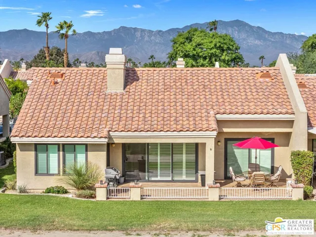 This golf course home is ready for you to move in! Enjoy beautiful views and an oversized tiled patio overlooking the 5th hole of the “Resorter” course. This Classic Model condo is one of the larger units in the community and has been thoughtfully updated and upgraded throughout.Featuring newer windows and doors, new plantation shutters, luxury vinyl tile flooring, and a top-of-the-line air conditioning unit, this home blends comfort and style. The updated kitchen, guest bath, and primary closet with built-ins add modern touches, while the newly remodeled walk-in shower enhances the primary suite experience.Relax in the living room by the gas log fireplace, or step outside to enjoy morning coffee as the sun rises over the fairway and in the afternoon, take advantage of the shaded patio for refreshments.Perfectly located just a minute from the clubhouse, pickleball and tennis courts, restaurants, lounge, and snack bar, this home offers both convenience and resort-style living. The club is owned by the homeowners, and short-term rentals are currently allowed, making this property an excellent investment or vacation retreat. High-quality, newer FURNISHINGS included minus a few personal items. Palm Desert Resort CC features 18-hole championship golf course, a newly renovated clubhouse, 20 pools and spas, and the Coachella Valley’s premier pickleball and tennis club! This home has some of the highest quality improvements within the gates of Palm Desert Resorter, past or present. Your desert oasis awaits!