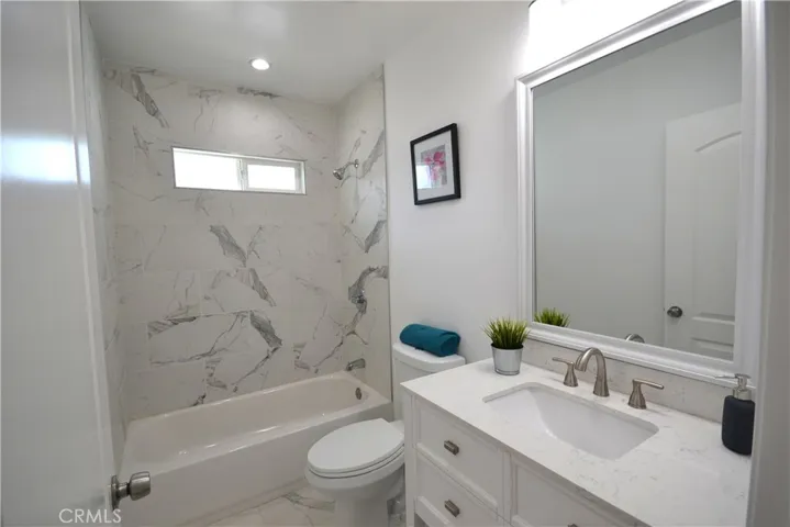 Two homes on one lot, each with its own address and its own electric and gas meter. Front house was completely remodeled in 2018 including a permitted addition of almost 500 sq ft. for a total of 1404 sq ft. It features 4 bedrooms, 3 beautifully remodeled full baths, a gorgeous kitchen with custom cabinets, quartz countertops & stainless steel appliances, LVP flooring, newer HVAC system and tankless water heater. The back unit was newly built in 2018 and includes 2 bedrooms, 1 bath and measures about 575 sq ft. It also has a beautiful open kitchen with quartz countertops and stainless steel appliances, a mini split HVAC system and a stacked laundry unit closet inside. The property features a long driveway with a drive-thru carport to a paved area that can fit several cars. Very low maintenance front and backyard since both have beautiful turf installed. Back unit is currently tenant occupied through Feb 2026.