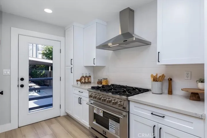 Timeless cottage-style architecture meets thoughtful modern updates, a beautifully refreshed 2-bedroom, 1-bath home located in the heart of West Adams. Set on a picturesque, tree-lined street, this light-filled residence blends original charm with today’s comforts, creating the ideal balance of character and convenience. Inside, natural light fills every room, highlighting the wide-plank laminate flooring and open, airy layout. The updated kitchen is a true standout—featuring quartz countertops, classic white shaker cabinets, a large kitchen island for entertaining or casual dining, a 6-burner range, and an inviting family room that invites you to slow down and savor your evenings. Ceiling fans in the bedrooms add comfort, while central air and heat ensure year-round climate control. A dedicated laundry room with space for a washer and dryer adds everyday functionality. Each bedroom is generously sized, and the full bathroom is centrally located for easy access. But the real magic continues outdoors—step into a spacious backyard that feels like your own private park. With mature citrus trees that produce an abundance of fruit, it’s the perfect setting for weekend lounging, gardening, or entertaining under the stars. Located just blocks from local favorites like Highly Likely Café, Cento Pasta Bar, Whole Foods, Target, and the Farmdale Metro Station, this home offers the lifestyle today’s buyers are looking for—charm, upgrades, space, and access to the best of LA living.
