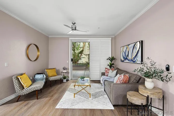 Welcome to your future oasis at 4165 Executive Drive, Unit F107, nestled within the illustrious Regents La Jolla Community. Get ready for a rollercoaster ride of charm and luxury in this beautiful first-floor unit right in the heart of UTC/La Jolla. Step through the front door and prepare to be dazzled. On one side, you’ll find a roomy primary bedroom, complete with a walk-in closet that’s practically begging to be filled with your shoe collection. Meanwhile, on the other side, there’s a generous secondary bedroom, just a hop, skip, and a jump from a full bathroom with a spacious walk-in closet. Featuring newer luxury vinyl plank flooring and shutters throughout. Beautifully appointed kitchen with a bar counter open to your formal dining and living areas with sliding door access to your private patio. The Regents La Jolla brings the resort experience to your doorstep. You’ll have a pool, a spa, and cabanas right next door. Plus, a private movie theater, a fitness center, a yoga studio, a game room, and a swanky clubhouse. They even have cooking classes, a business center with copying services, a clubhouse with a piano (for those impromptu jam sessions), and billiards. Now, for the cherry on top – two assigned tandem parking spaces in the gated and underground garage. No more circling the block for parking; you’re the VIP here. But the location is the real kicker! You’re smack dab in the middle of everything. Highways, public transport, and shopping are all within arm’s reach, including UTC Westfield Mall, I-5, I-805, I-52, I-56, Even the beauty of La Jolla is practically at your doorstep. Don’t miss out on this gem – your future abode at 4165 Executive Drive, Unit F107. It’s not just a home; it’s an adventure waiting to happen.