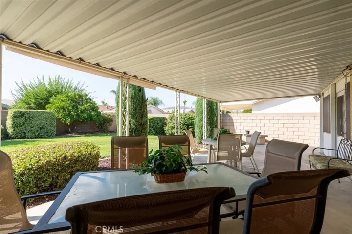 PAID OFF SOLAR SYSTEM AND PRICE REDUCTION!!!!!!! Wonderful 55+ senior home with No HOA and very low taxes in a quiet neighborhood away from the main busy roads in Menifee. Beautiful curb appeal and a covered front porch area perfect for sipping coffee and relaxing before heading into the spacious front living room and dining room. Walking into the kitchen there is a massive kitchen island with plenty of storage cabinets and a newer refrigerator and beautiful sightlines to the landscaped backyard. The kitchen is open to a secondary living room with a cozy fireplace which also leads to another enclosed lanai area that is currently being used as an office. There’s a large guest room with a full bathroom with newer vanity and fixtures and the primary bedroom has it’s own ensuite bathroom as well. There’s multiple ceiling fans in almost every room and paid-off solar panels for energy efficiency! All the windows have window treatments and there’s a landscaped backyard with fruit trees, covered patio, cinderblock fencing and a shed for convenience. The roof is about 17 years old and the AC unit is about 7 years old and all the appliances with stay for the buyer!