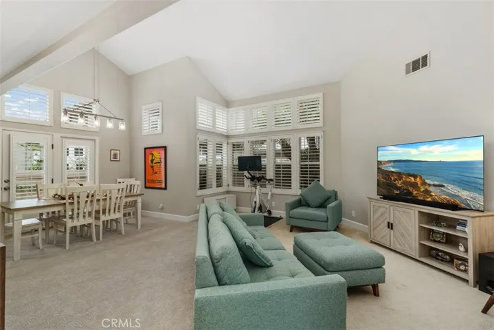 This turnkey two-story townhome offers 3 bedrooms, 2.5 bathrooms, a family room and private rear yard. Soaring cathedral ceilings and expansive windows flood the home with natural light, creating a bright and inviting atmosphere. The spacious great room is perfect for entertaining, while the cozy family room with fireplace invites relaxation. The kitchen boasts white cabinetry, granite countertops, a new stainless-steel refrigerator, and a cheerful breakfast nook. Upstairs, the primary suite offers plenty of light with a view balcony and a newly remodeled bathroom featuring a walk-in shower, spa tub, and white cabinetry. The two additional bedrooms, a full bath and laundry area complete the upper level. Additional upgrades include newly re-piped PEX plumbing, a new water heater, whole house water filtration system, wood shutters, and slate stone flooring downstairs. Step outside to your private entertainer’s patio—an oasis framed by mature palms and greenery. The nearby community pool and spa add to the resort-like experience. Low tax rate and NO MELLO-ROOS! Located just under 3 miles from stunning beaches and close to hiking trails, parks, and everyday amenities—this home truly has it all. Don’t miss your chance to live where luxury meets location!