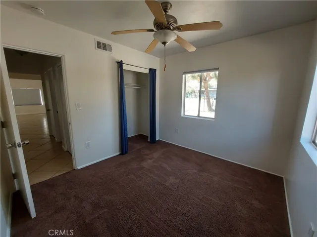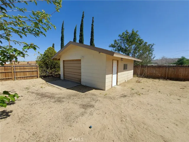 This 2 bedroom 1 bath home is located walking distance to Old Town Yucca Valley. This super cute property has a fully fenced yard and a detached 1.5 car garage. Upon entry you will notice the tile flooring and vaulted ceiling in the living room. The kitchen comes with a double sink, refrigerator, electric cooktop and built-in oven. ceiling fans throughout. The hallway is well equipped with an abundance of storage space on both sides. Both bedrooms have brand new carpet. French doors off the living space will lead you to the large covered patio in the spacious backyard.