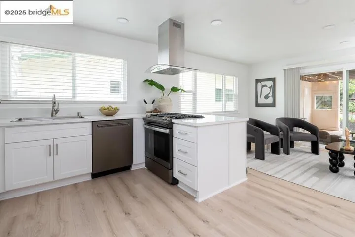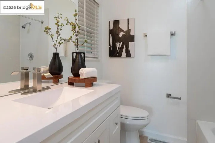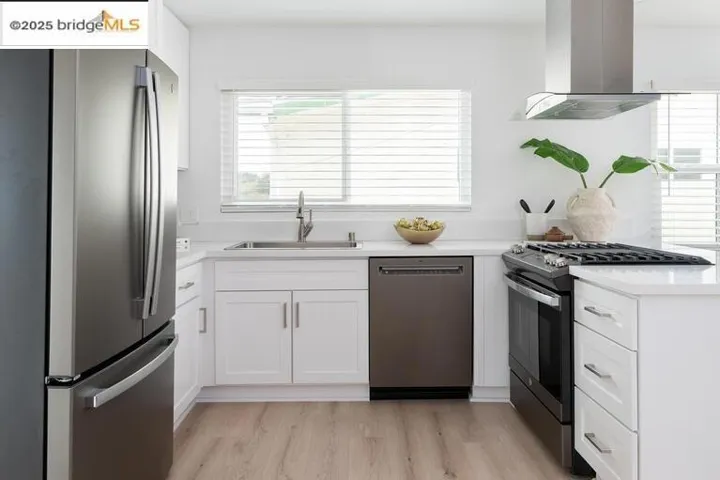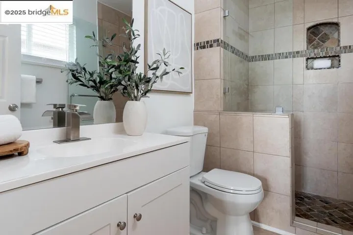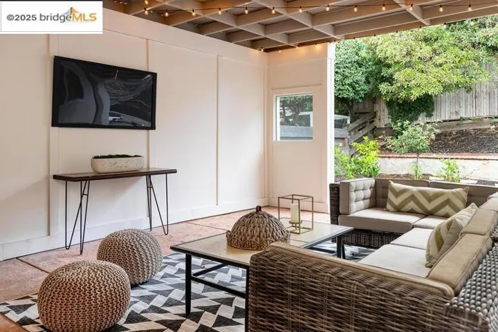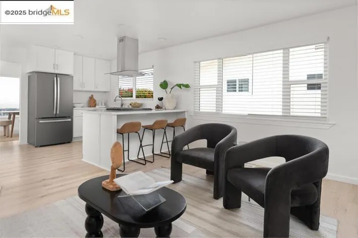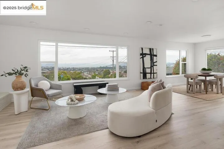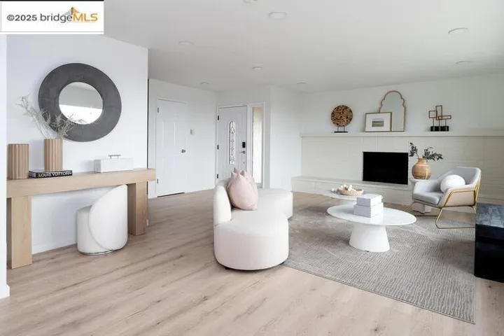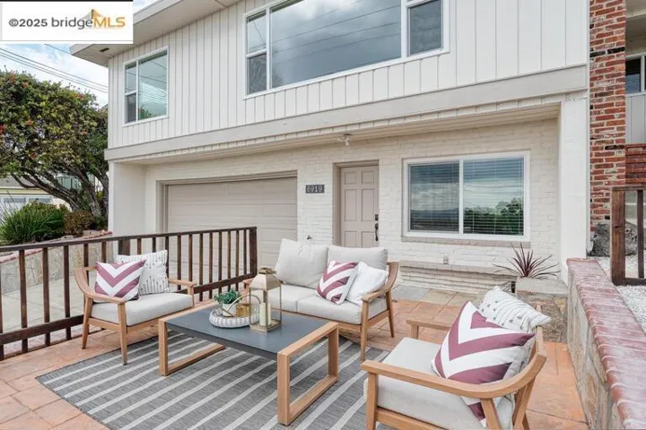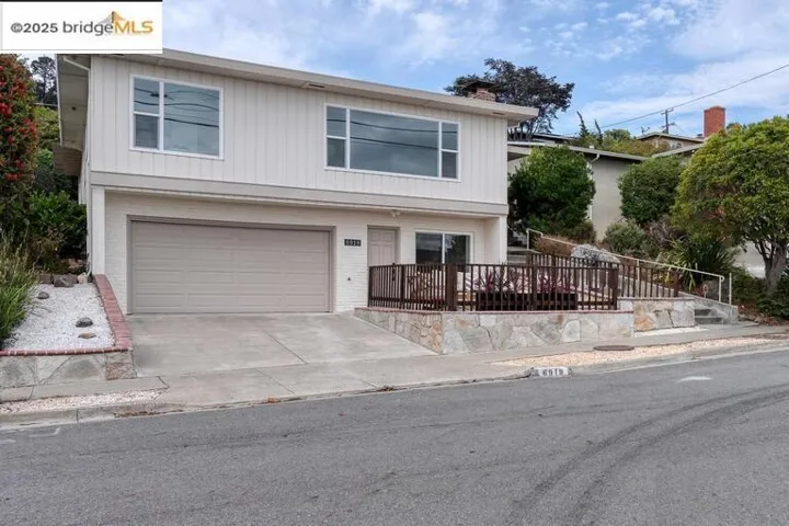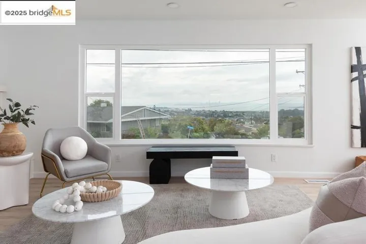 Welcome to this beautifully updated 3-bedroom, 3-bath home with ++bonus space and panoramic views of San Francisco, the Bay, and two iconic bridges. Step inside and be instantly captivated by the sweeping vistas from the open-concept living and dining area, where blonde laminate floors, an inviting fireplace, and oversized picture windows create a warm, light-filled space perfect for relaxing or entertaining. The brand-new kitchen is a chef’s dream, featuring quartz countertops, a breakfast bar, soft-close cabinetry, a new range with island canopy hood, and a separate prep area. It flows seamlessly into the family room, which opens to a private covered patio —ideal for hosting gatherings or enjoying peaceful evenings outdoors. Upstairs, you’ll find three bedrooms, including a primary suite with a walk-in cedar closet and a modern ensuite bathroom. The two additional bedrooms share an updated hall bath with a new vanity, lighting, mirror, and a shower over tub. Downstairs, a private bedroom suite with its own entrance, cozy fireplace, and full bath offers a perfect setup for an in-law suite, bonus family room, or a dedicated home office. The charming front patio adds curb appeal and provides easy access to this versatile space.